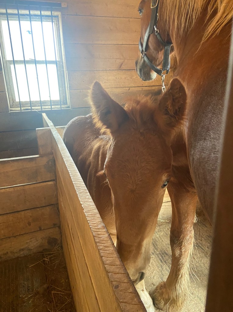 Our new filly is growing fast. She is fun to watch. Soon, her mom will return to the workforce, but for now they are enjoying the fresh grass and the warm sun.