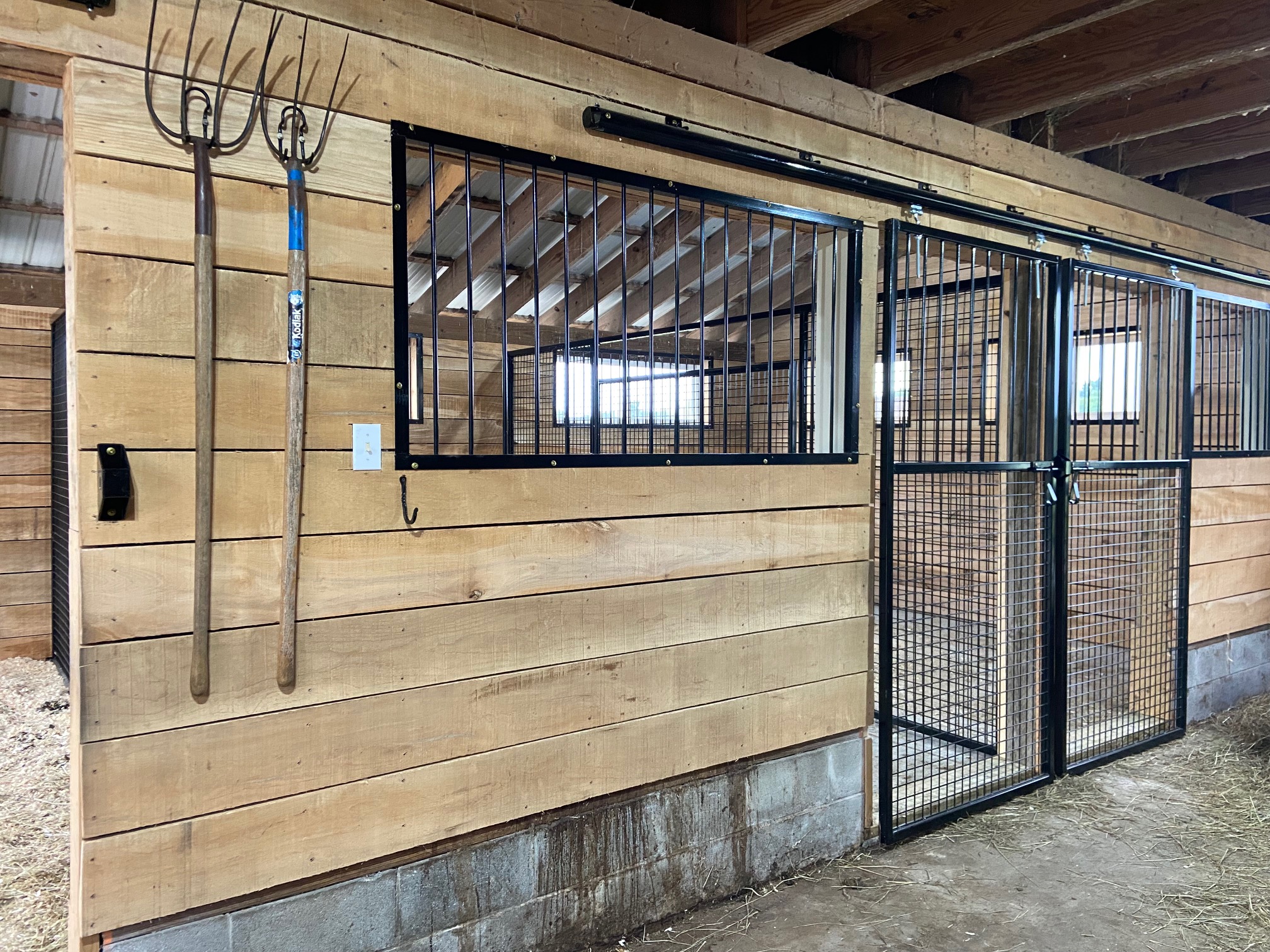 Our barn renovation is complete. Thanks to my dear wife, friends and family it went very well in spite of several delays waiting on materials as we built. It is a striking difference in the barn. The air flow and light found in the new stalls and even out into the old part of the barn, is wonderful. I am sure that we will enjoy it for years to come.