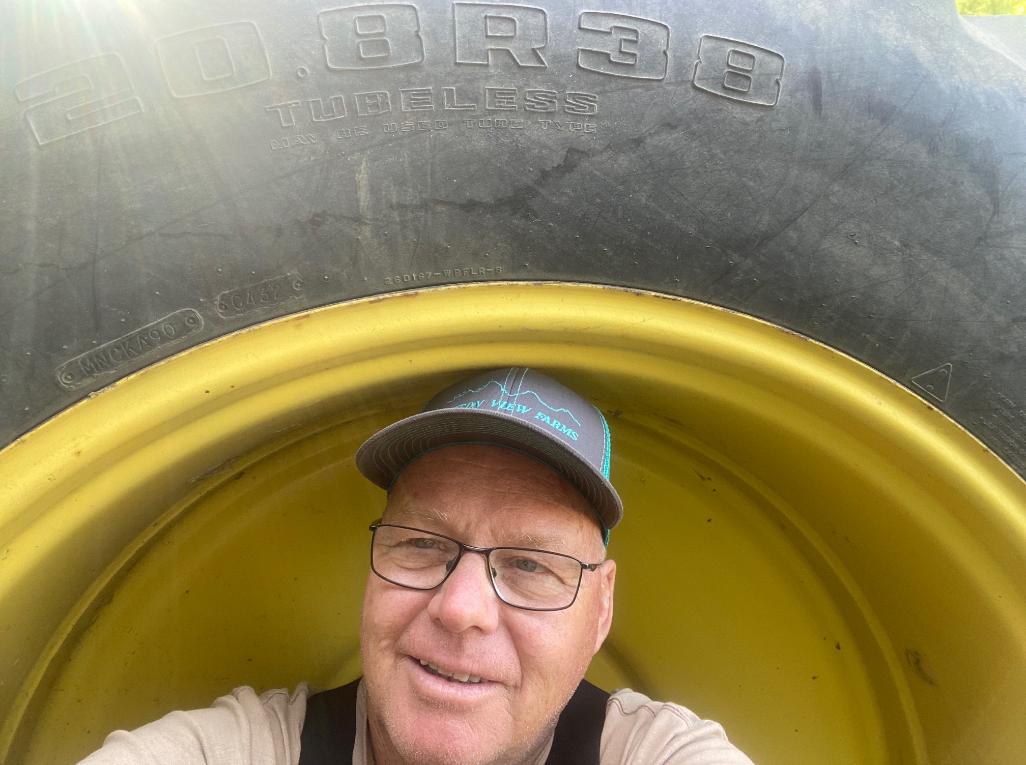I have been helping a farming friend. He has some very large equipment that chews up ground on a scale that amazes me. The other day, I sat down inside of one of the tractor tires for a short break.