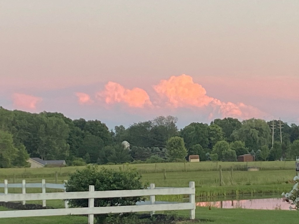The other night, as I sat on the patio after a long work filled day, I was treated to this beautiful sunset. I sat a while soaking up the beauty. I thought of my middle sister who loved sunsets of all kinds. She has passed from this world now, but scenes like this often remind me of her. It is not a sad time for me, but rather a time of celebration, just to remember her.