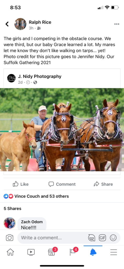 The North American Suffolk Horse Association held it’s 2021 gathering at our local fairgrounds. Many folks from states near and far came to see, help and celebrate these wonderful horses. We had unseasonably hot and muggy weather that affected man and beast. The weather cut some of our events short and a few were taken off the schedule. We did however, accomplish quite a few things. We had some seminars in the cool and shade of the big barn. We had friendly competitions in the arena and endless conversations echoed in the aisleways.