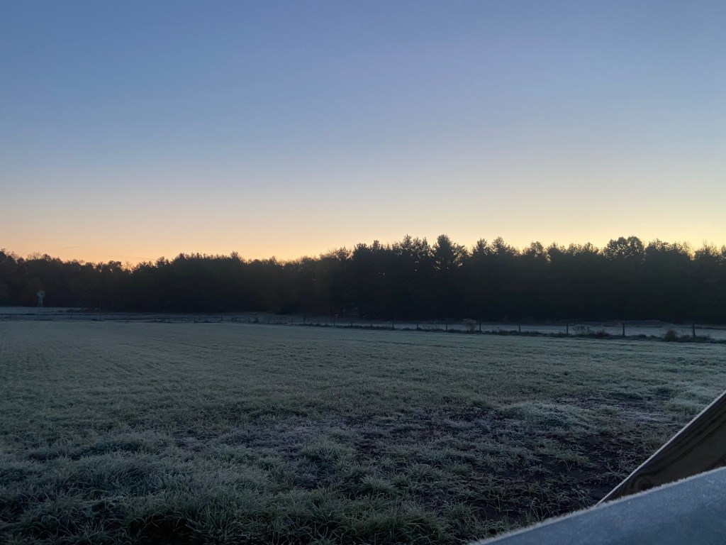 We have had a couple mornings of cool temperatures with frost on the rooftops and even one morning with a skiff of snow. Today was different. The water puddles were frozen over and the whole scene was white. The killing frost that signals the end of the growing season is here.