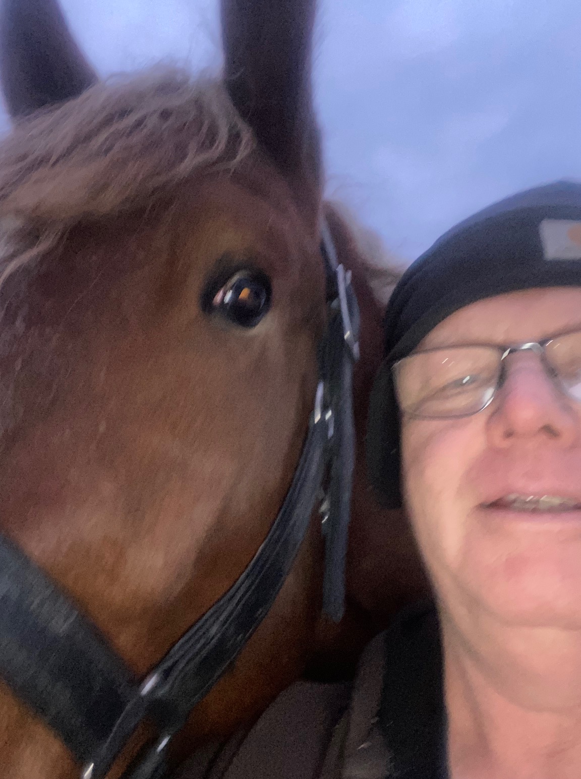Hank, our herd stallion and me clowning around for the camera. He wasn’t impressed with the flash too much. We have been busy training with Hank, keeping him on track to become a great work horse.