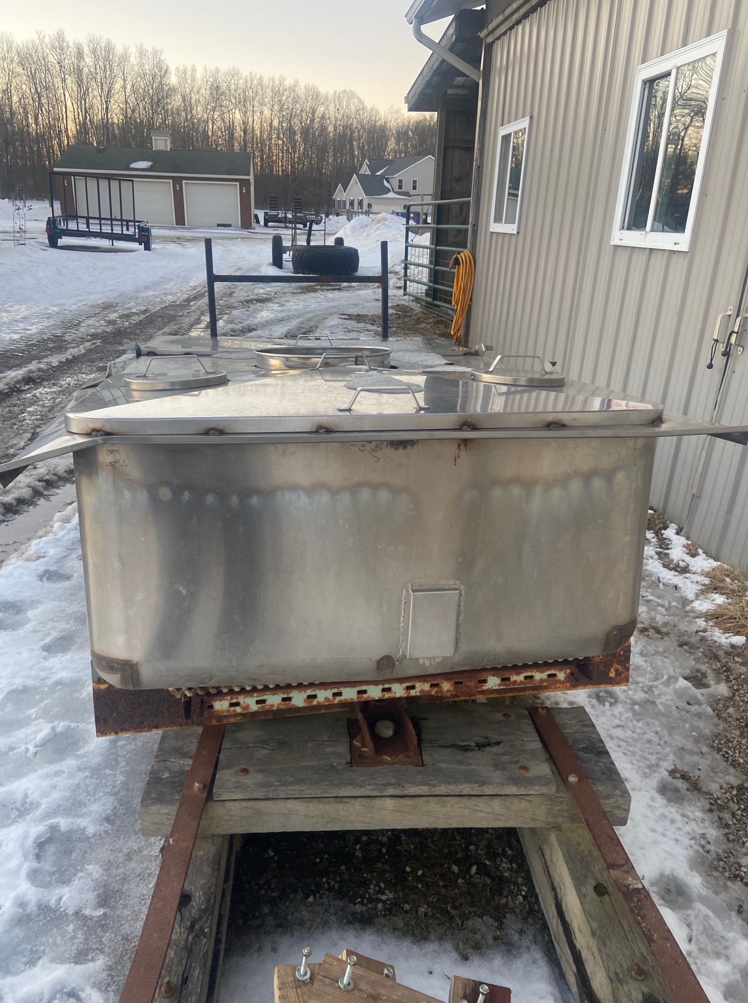 We looked into just buying a tank specialized just for this purpose. In fact last year at the close of our maple season, we ordered one. The manufacturer contacted me in late December to inform us that the rising cost of “everything” had caused them to have to more than double the cost of the tank. The new tank would have cost $3500.00 dollars! We cancelled our order. However, we still wanted to replace our old tank.