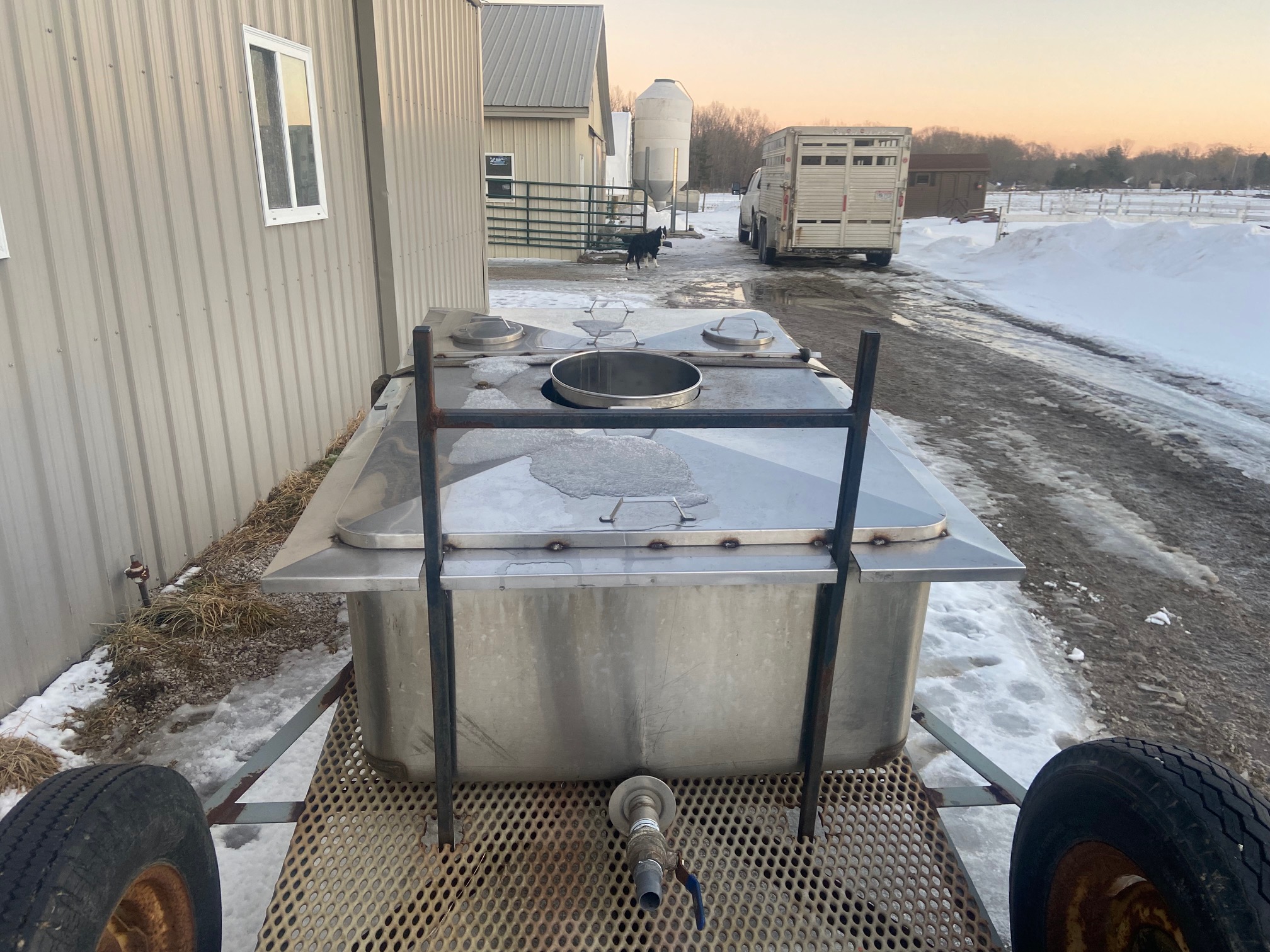 It is time to make maple syrup! We get excited every year for this season. There is one heck of a lot of work to do before the liquid gold is poured on pancakes, but this labor of love makes me smile every year. This year we frugally upgraded our maple sap gathering tank. Our old tank was galvanized and had begun to show the wear of many years of use. We bought the tank used ourselves and decided it was time to upgrade to stainless steel.