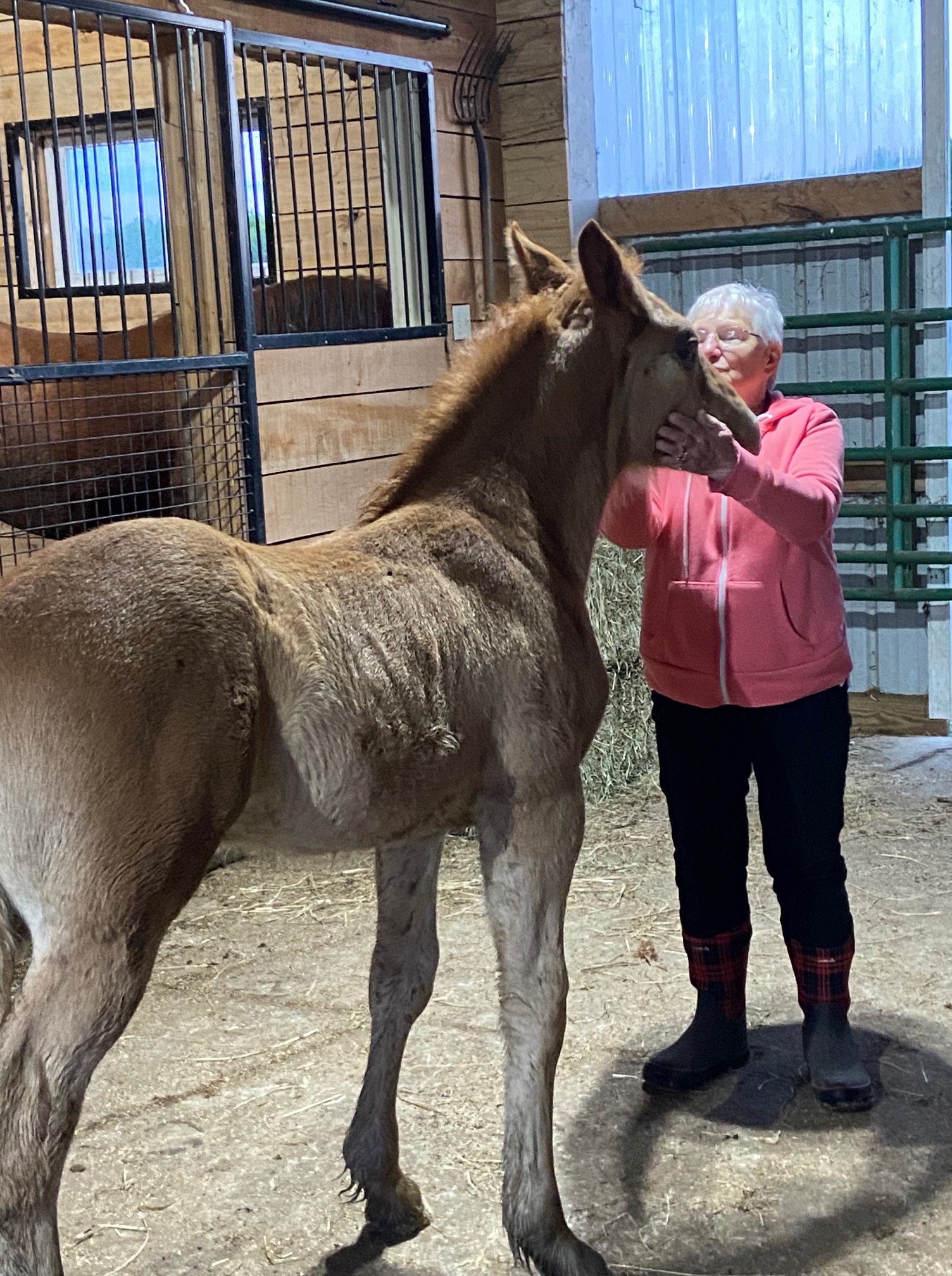 Our newest filly Maggee has become a friendly little gal. All of us pet her and make her welcome. My wife Connie greets all the babies and makes them feel at home. Her soft voice lets them know that no danger will befall them in our presence. This same direction is used when training our youngsters. We want them comfortable, safe and secure. They will be asked to work and expected to do their share, but kindness prevails at all times.