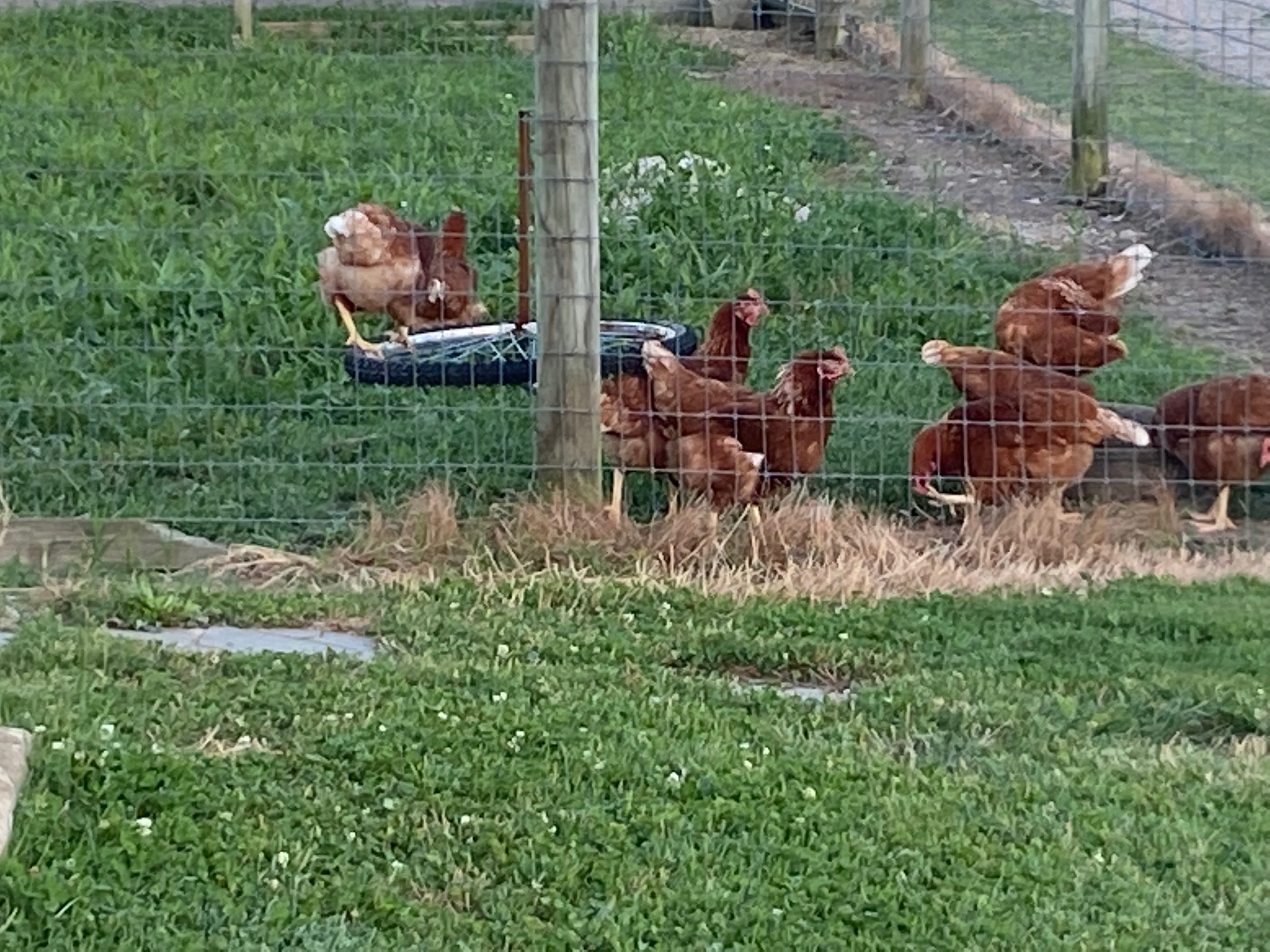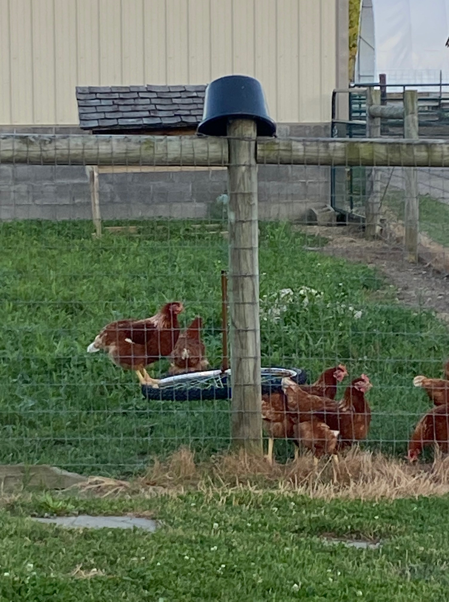 I built this little amusement ride for our hens. This flock of young pullets sit on it and even take it for a spin now and then. Our old flock were afraid of the strange contraption made from a bicycle wheel. The new gals however see it as a challenge and something to do.