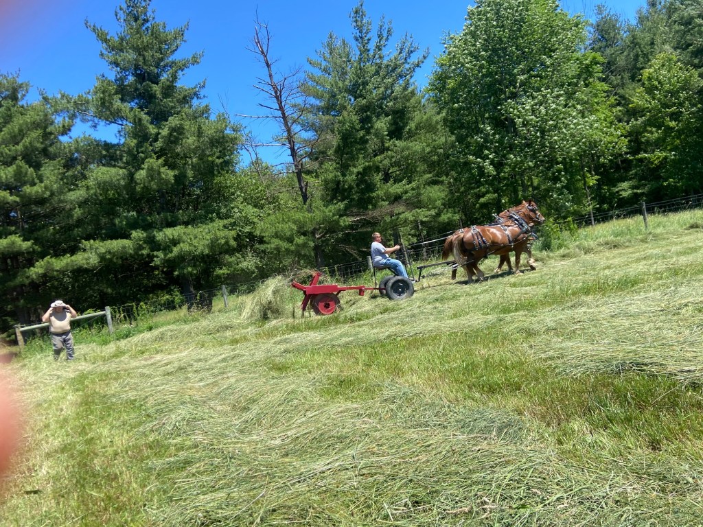 It was a great few days. The weather held. The temperature was actually cool with a stiff, hay drying wind. The flies were almost non-existent! We have more work to do, but wow, what a great few days this was. The horses all worked great and barely worked up a sweat in the cool air.