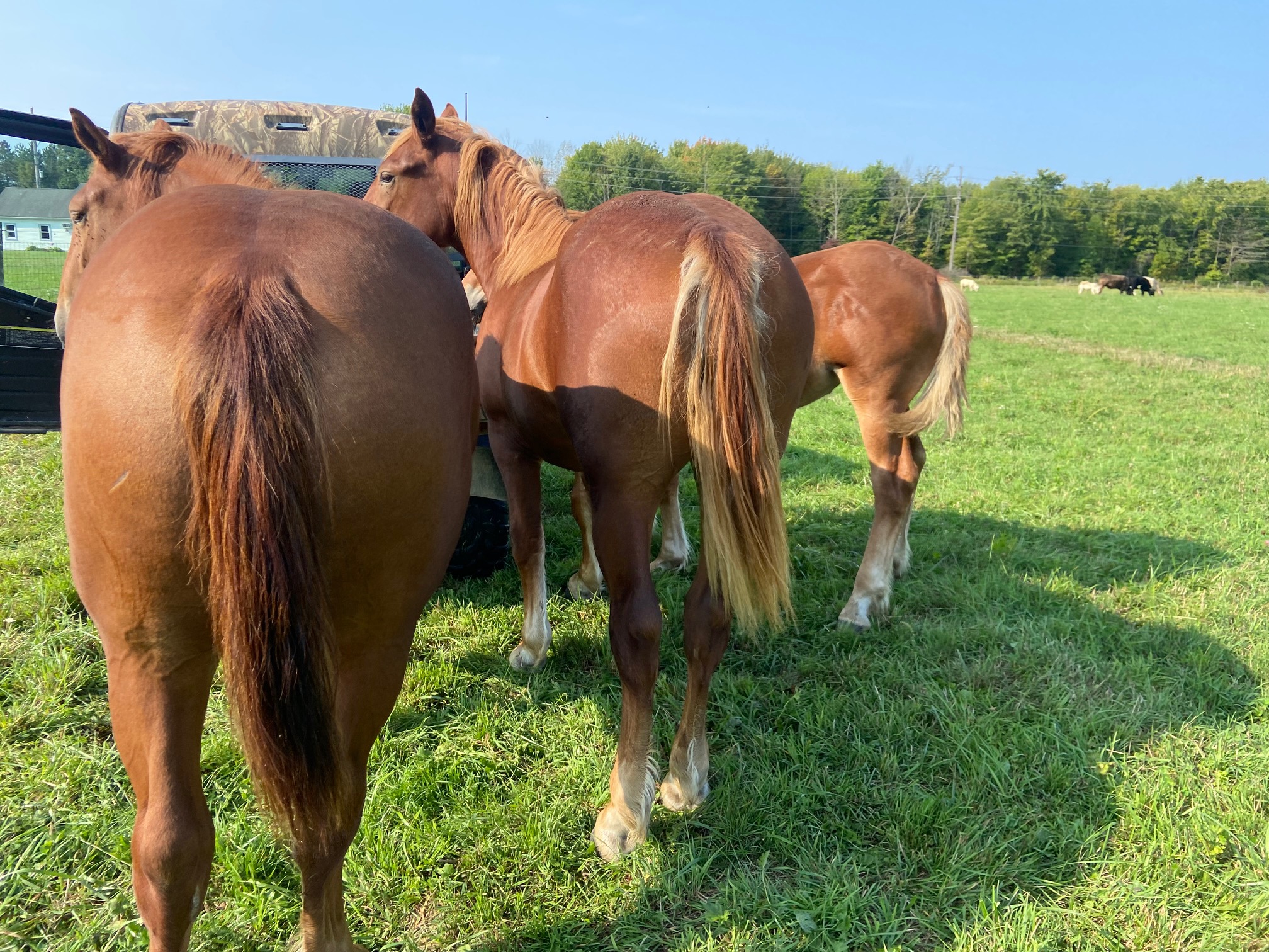 Bree has begun her training in harness. She is learning well. We are still training a few others to finish them off. I like them broke quiet to respond to voice and line pressure. I want them to always feel safe and under control. They are ambassadors for our farm. They represent us well and I want to make sure that tradition continues.