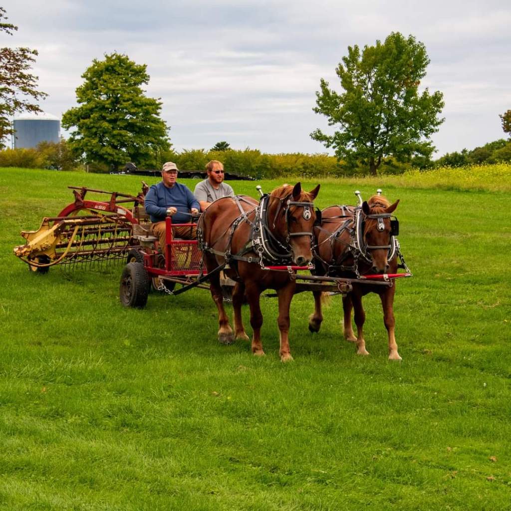 We went to a local Metro Park in neighboring Lake county. We went to support their annual “Horsepower” days. We went to show our Suffolk Punch draft horses to a welcoming crowd. We made it a learning session for our son Jake’s youngest horse, Anna. She is the smaller one in the photos. She is a 3-year old and learning fast. The people, flags, balloons, noise and other horses were new to her. She looked and learned. She stayed calm and watched her teammate Amee for clues. She/We had an outstanding day.