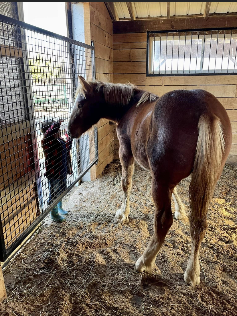 Yesterday, we had a family visit us. These photos are from that visit, (Thanks Jennifer) Maggee made up with this little boy. They shared a moment together. Our littlest filly is growing fast. She stays with Grace and Bree. They are the three amigos. Maggee is learning a whole bunch of things. She has learned her stall. She comes when I whistle, with the rest of the girls. She is a bit bossy, but the pecking order seems to keep everyone happy.
