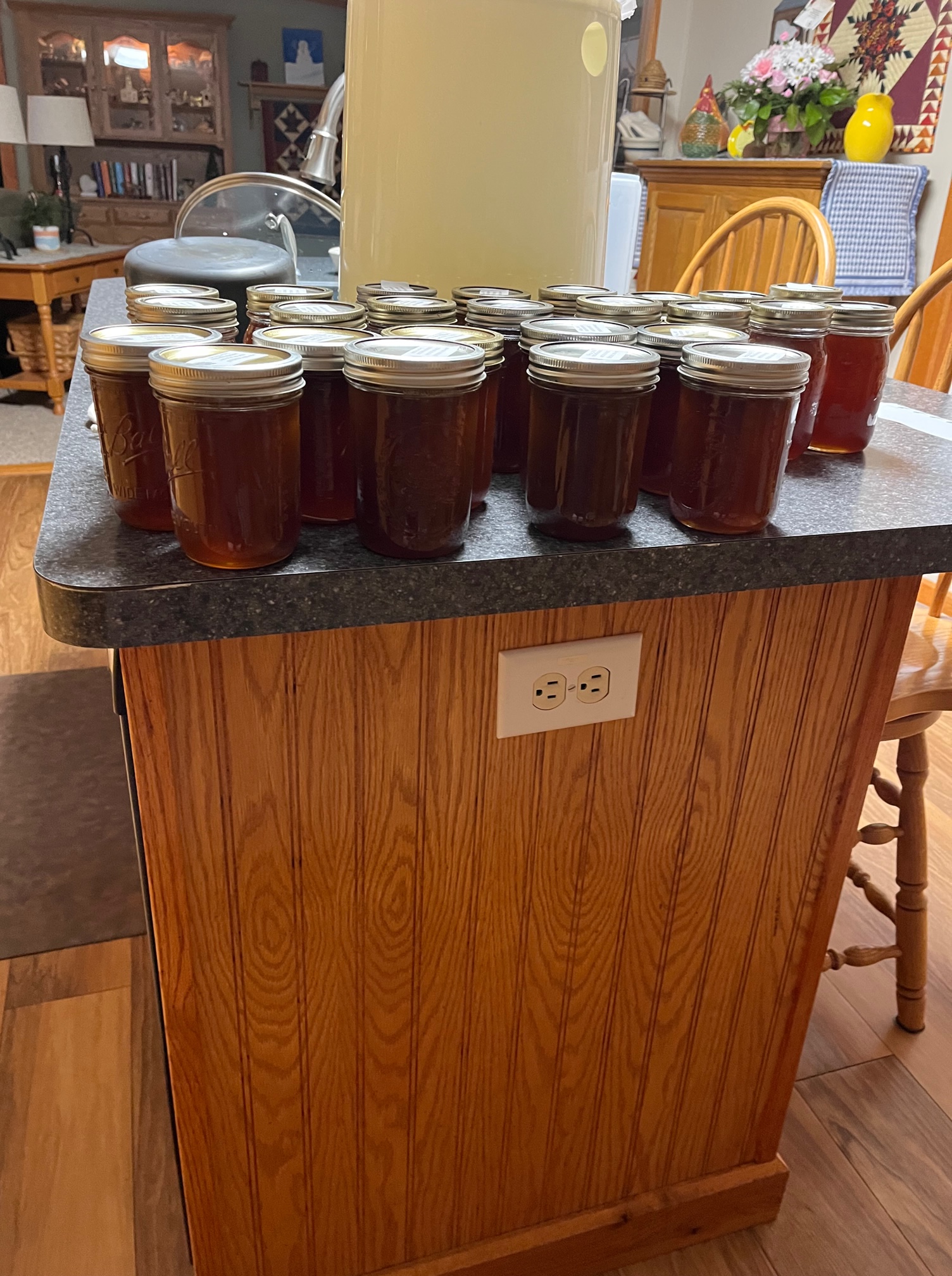 Thanks to two very good friends, we got our 2022 honey all extracted. The bees gave us 26 pints of beautiful, mostly clover honey. It is good on everything. I like it in my morning tea.