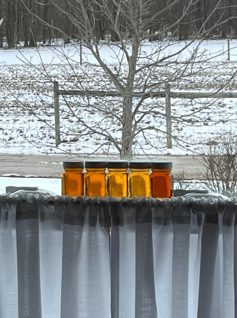 We have been crazy busy here! We completed the hog butchering on the day that hindsight would tell us we should have tapped our maple trees. We missed the first run, but did scramble and have been on track since. The photo above shows a sample from our first boil of 2023.