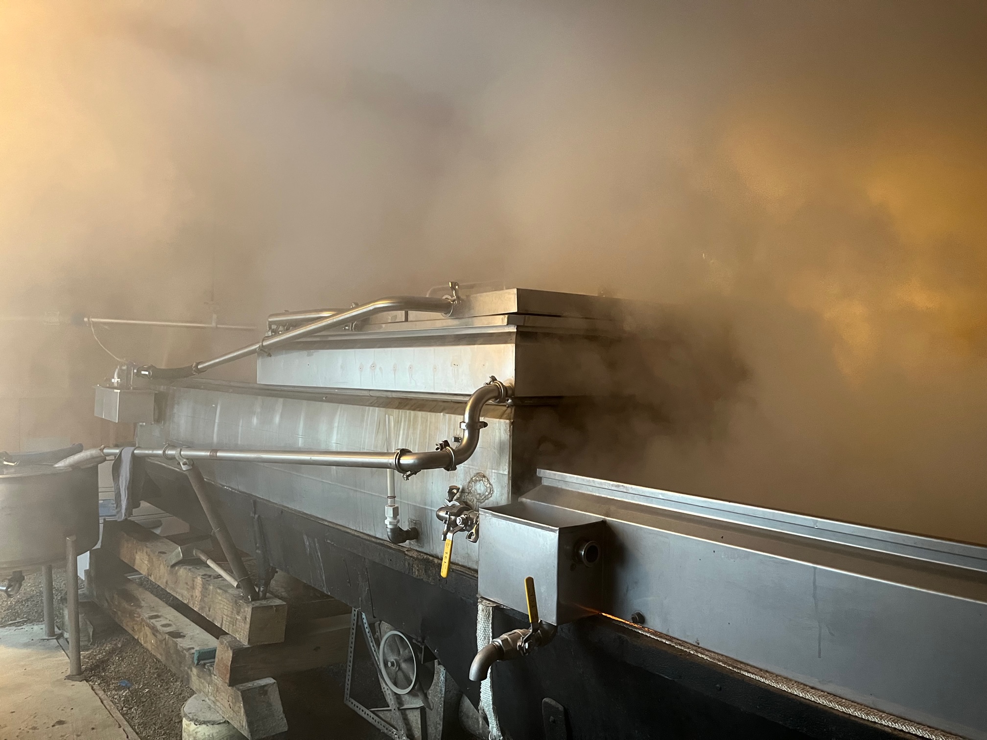 The preheated sap helps me burn less wood too. The steam from the boiling sap, usually just vents out the building, but this allows us to make use of the BTU’s that would otherwise be lost. It has upped my efficiency too, allowing be to boil faster, using less wood. There is still plenty of steam to fill the sky and make me remember my grandparents sugarhouse steaming away in my childhood memories.