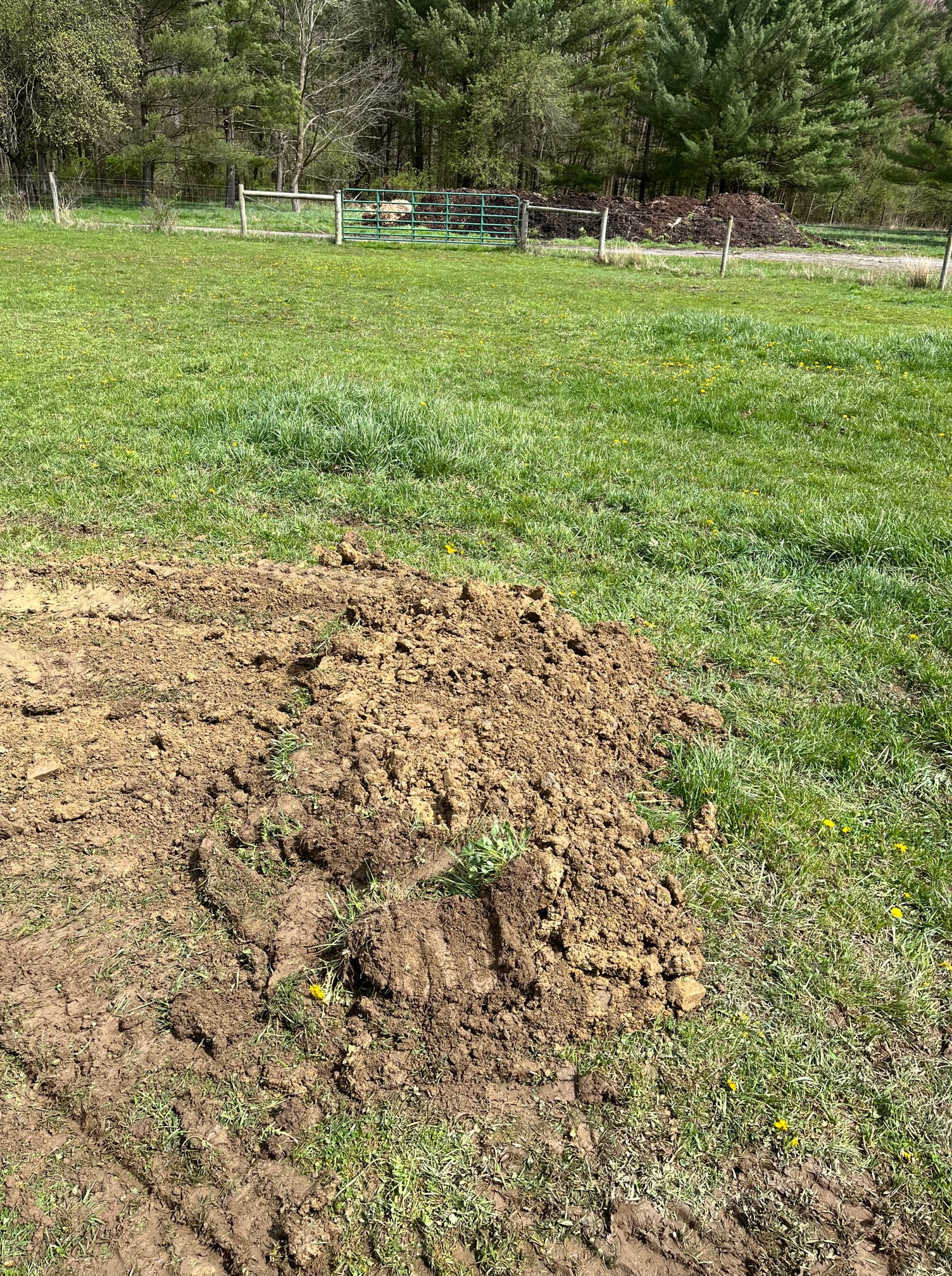 I buried Tug right there on his grassy knoll. Mom Amee, whinnied for him awhile yesterday, but had become quiet by evening. Today she is grazing and keeping Abby and Joy company. Thankfully Amee is ok and doing fine. We will breed her back next month and try again for 2024.