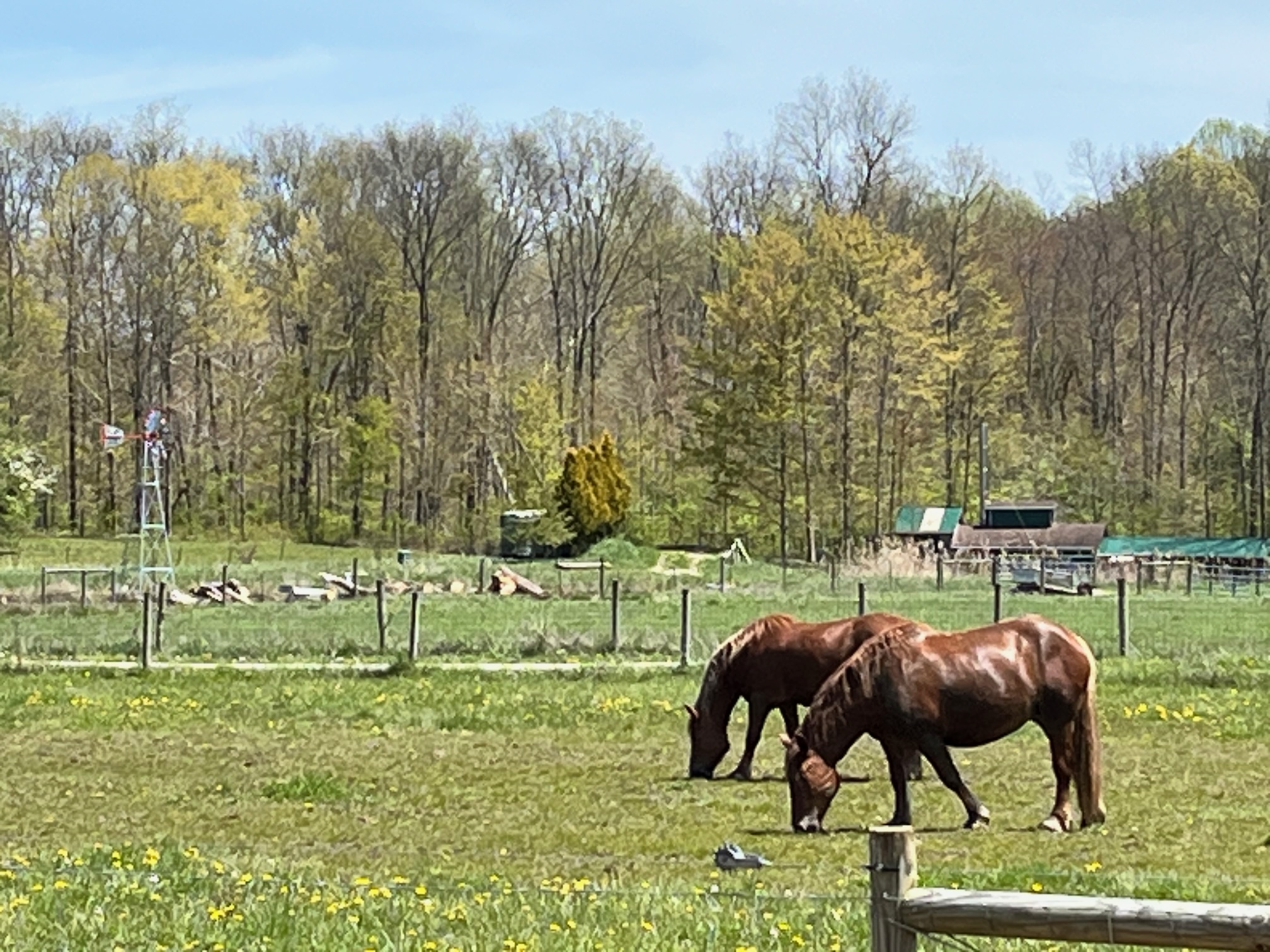 It was a beautiful day. This team in the foreground hauled all the sap this year. They are soaking up the sun and nibbling some grass. I think they enjoyed the day too! Especially since they didn’t have to pull the plow for my “fun”.