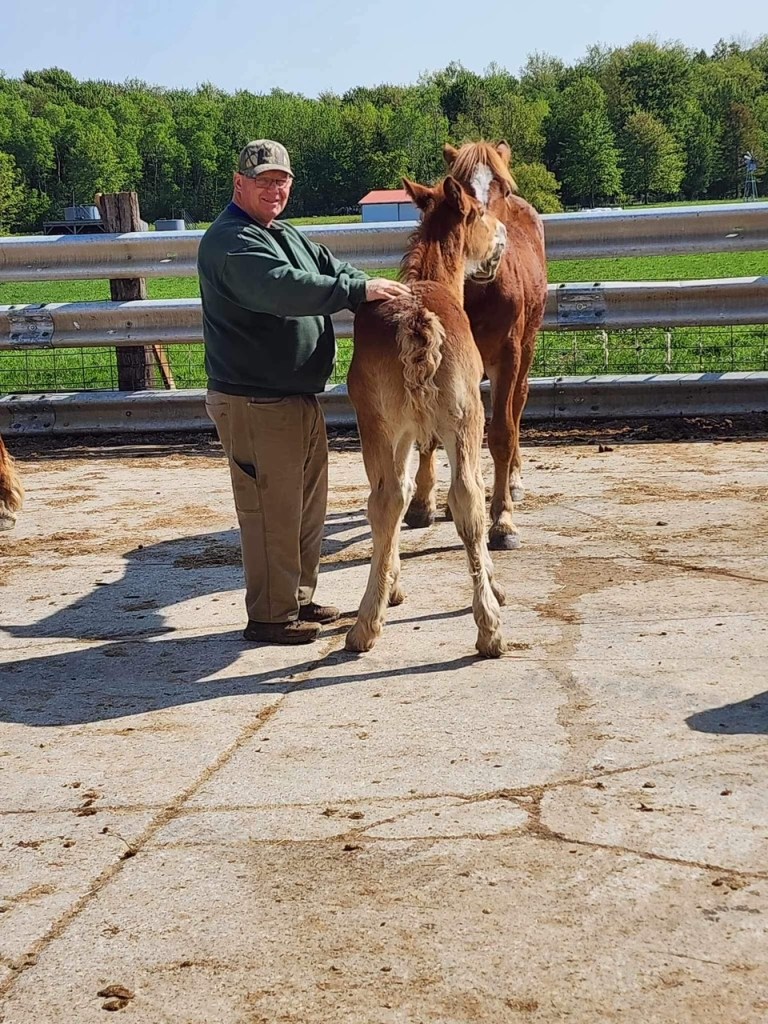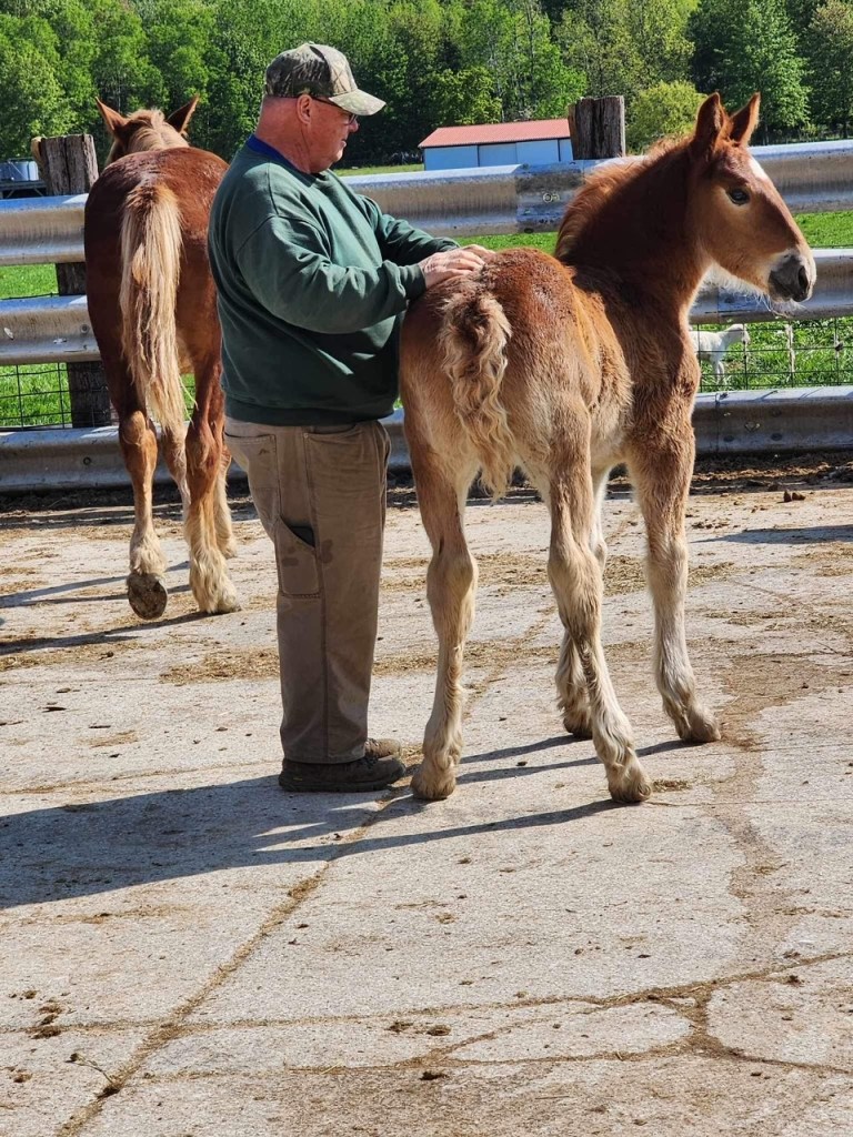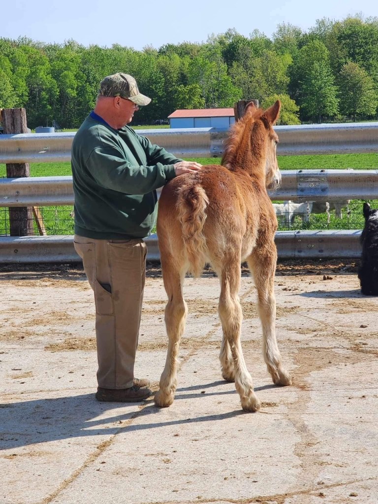 Our filly Joy gets a morning back rub. She is a very tame little girl. She seeks me out for attention.