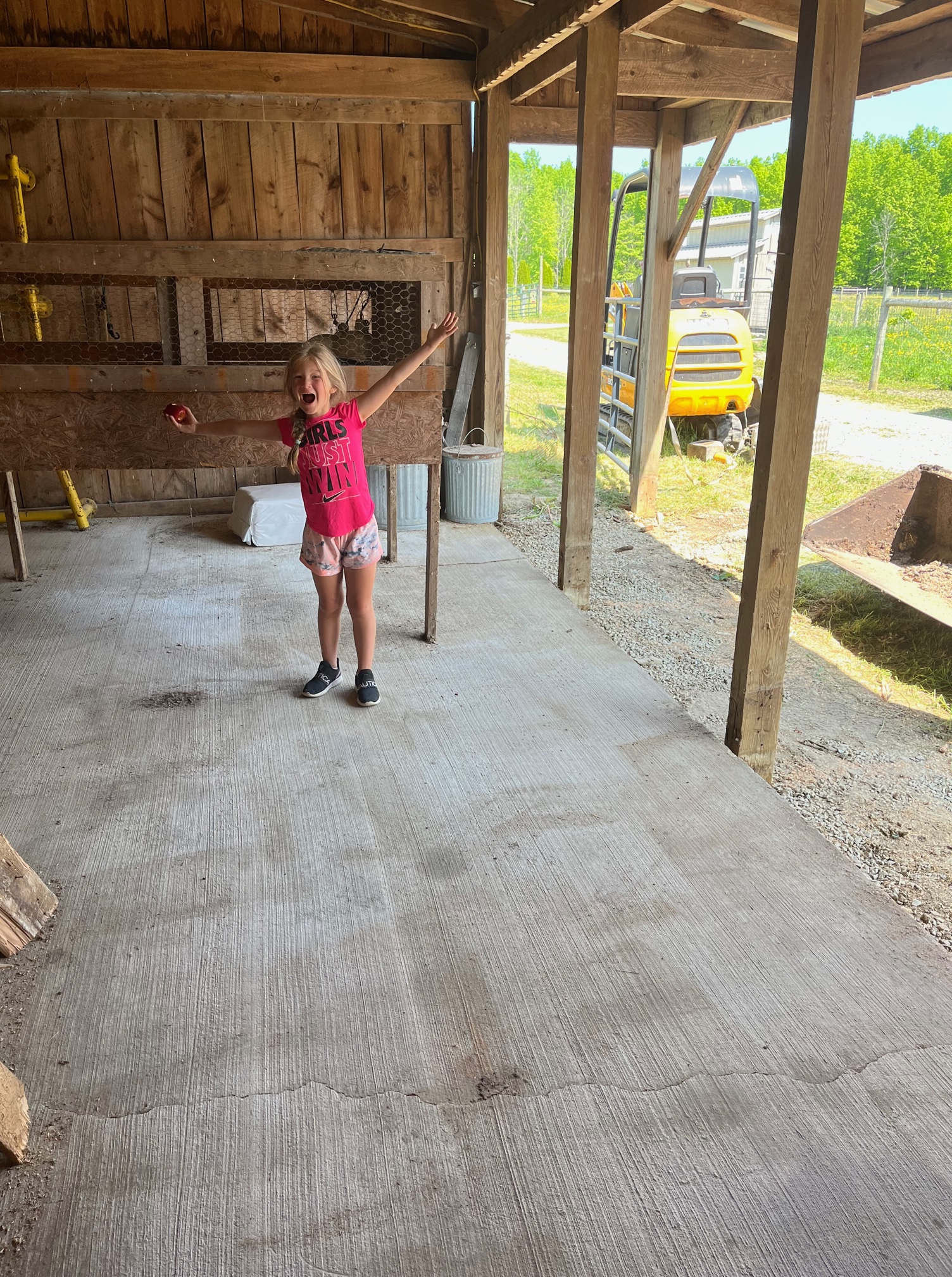 Judging by her smile and the clean concrete, I’d say we have done okay so far. We still have more to do, but we are off to a great start. Organization and using what we already have, for a different purpose, makes economic sense. Having young people involved and helping is priceless.
