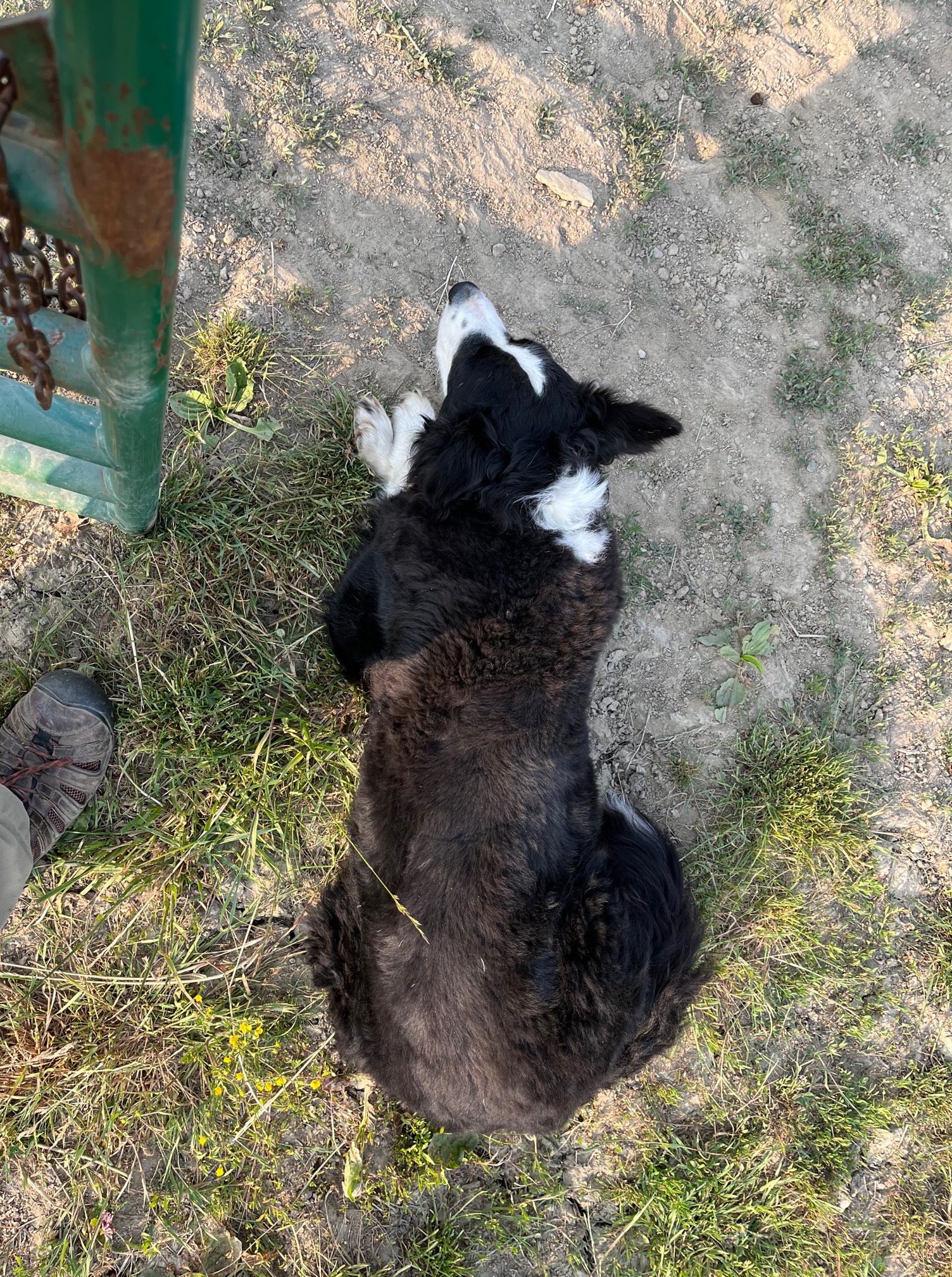 Sam and I are waiting for the horses to come in for breakfast. He waits patiently at my feet, paws crossed and relaxed. We are also waiting on some needed rain. In the meantime, we are mowing pasture and other jobs, so as to make the best use of whatever rain we get. Farming is all about the weather. You’re either asking for it, praying over it, discussing it or complaining about it. I think the best policy is to just be patient and wait. Just roll with the punches. It is much less worrisome that way.