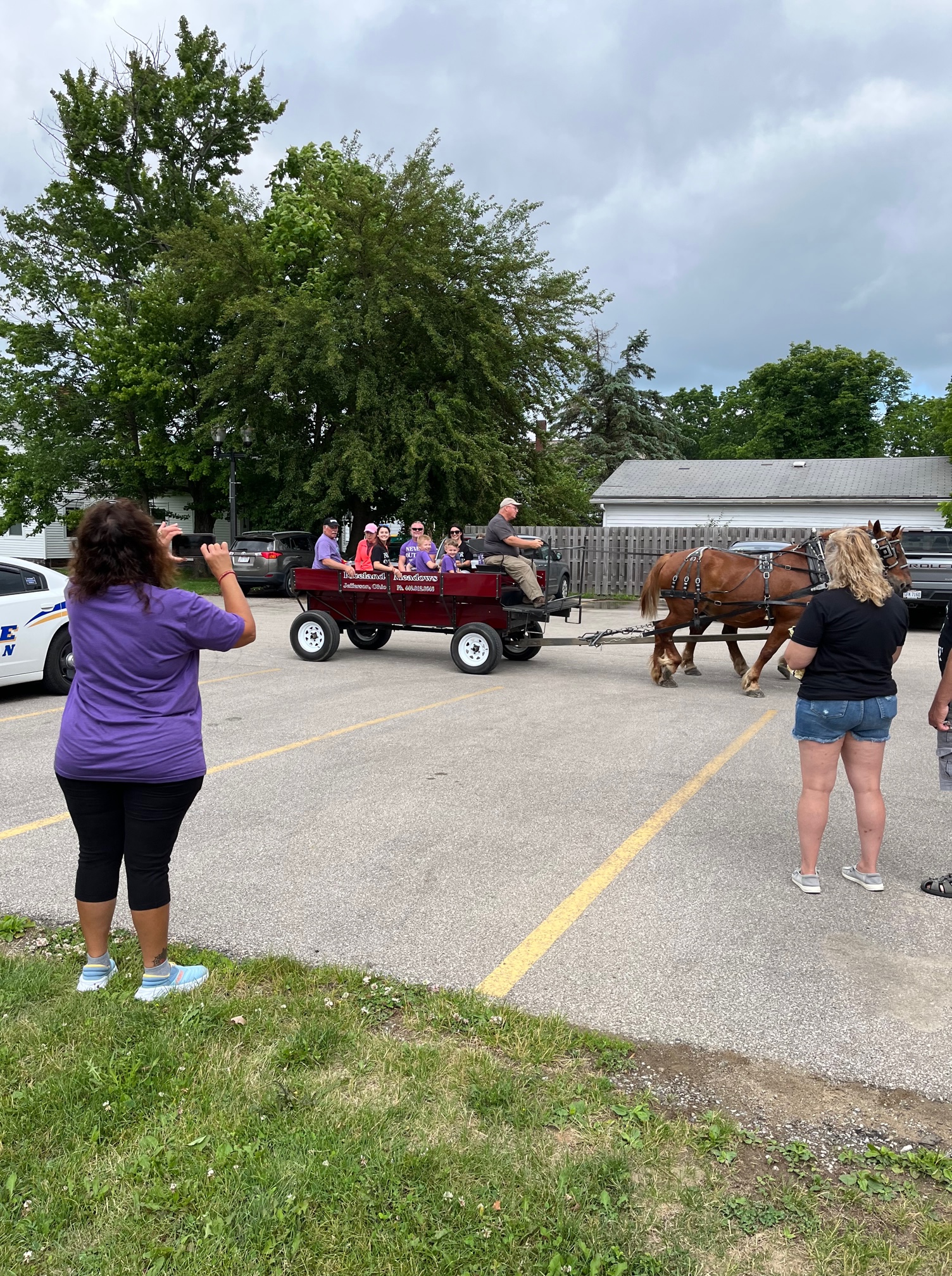 We got the opportunity to pay it forward. Our Suffolks gave wagon rides at the local “Relay for Life” in the center of town over the weekend. Our non-profit, Saving Suffolks, partnered with the American Cancer Society, to raise monies. Our non-profit split our proceeds 50-50 with them. It was a fun day, emotional at times, but a fun day!