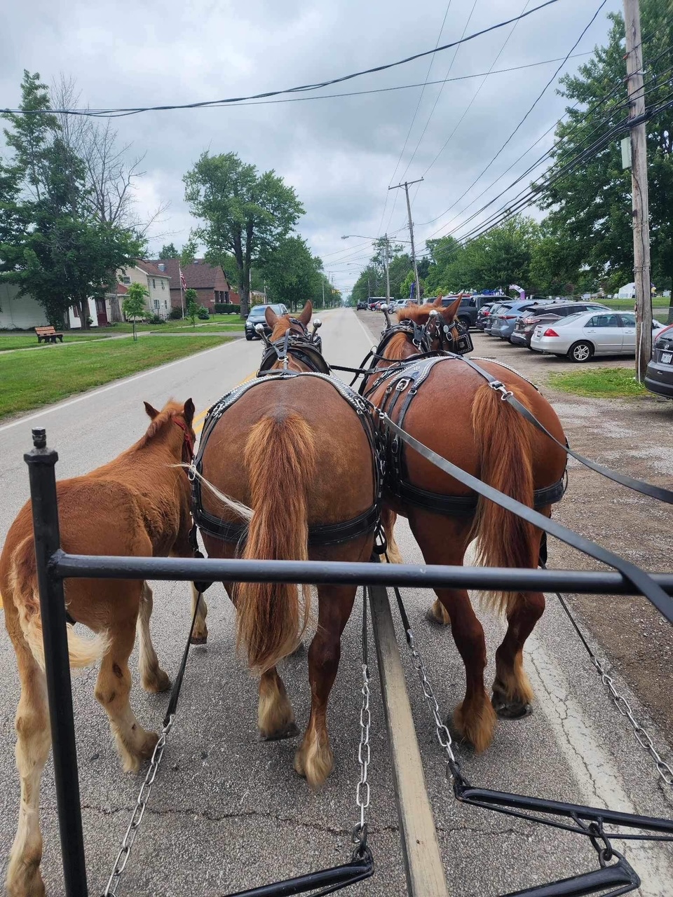 We took our older mares Abby and Amee. Abby’s filly foal Joy went along too. Joy learned much that day. There were lots of strange noises, fluttering flags and signs, even a big scary purple floaty guy that bent twisted and waved as we went by. The traffic passed us within feet of her and she made no fearful moves. Her mom was fine with all the scary stuff, so she was fine too.