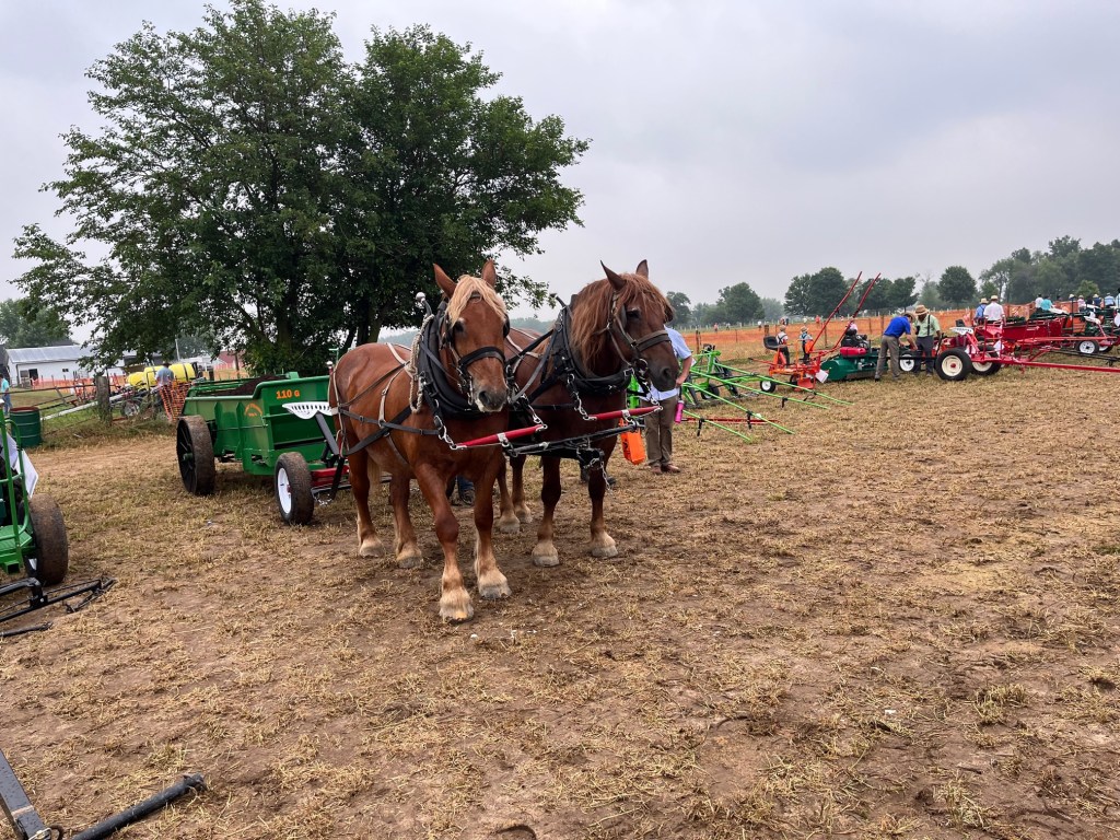 Well, goodbye June, hello July! We attended the annual draft horse event called Horse Progress Days. This year the travelling show was held in Indiana. It was well attended to say the least. There were all sorts of draft horse and farming things to see. Many types of equipment was shown in use and being pulled by draft power. There were speakers on many topics, sheep herding demos, and a whole bunch of vendors! The vendors sold almost everything that you can think of regarding horses, farming and homesteading. We had a great time.