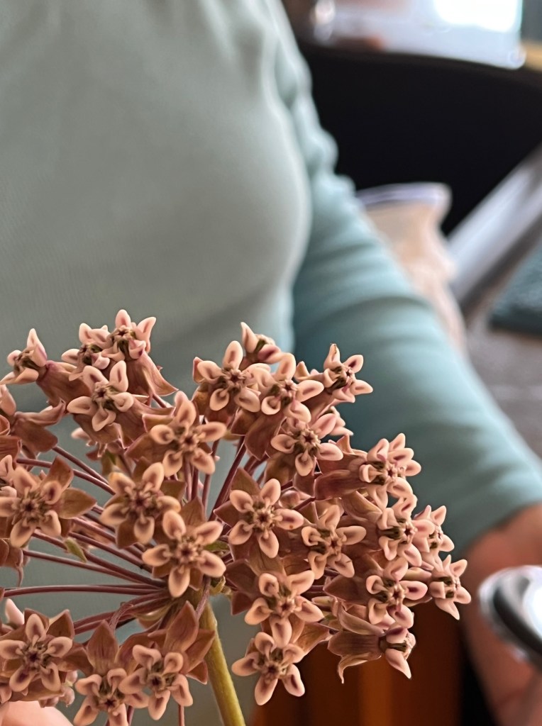 In another first, my granddaughter showed me a milkweed flower blossom. It was the first time for me to actually look at one. It was also my first time smelling one. They are beautiful and smell almost like a lilac. I was amazed.