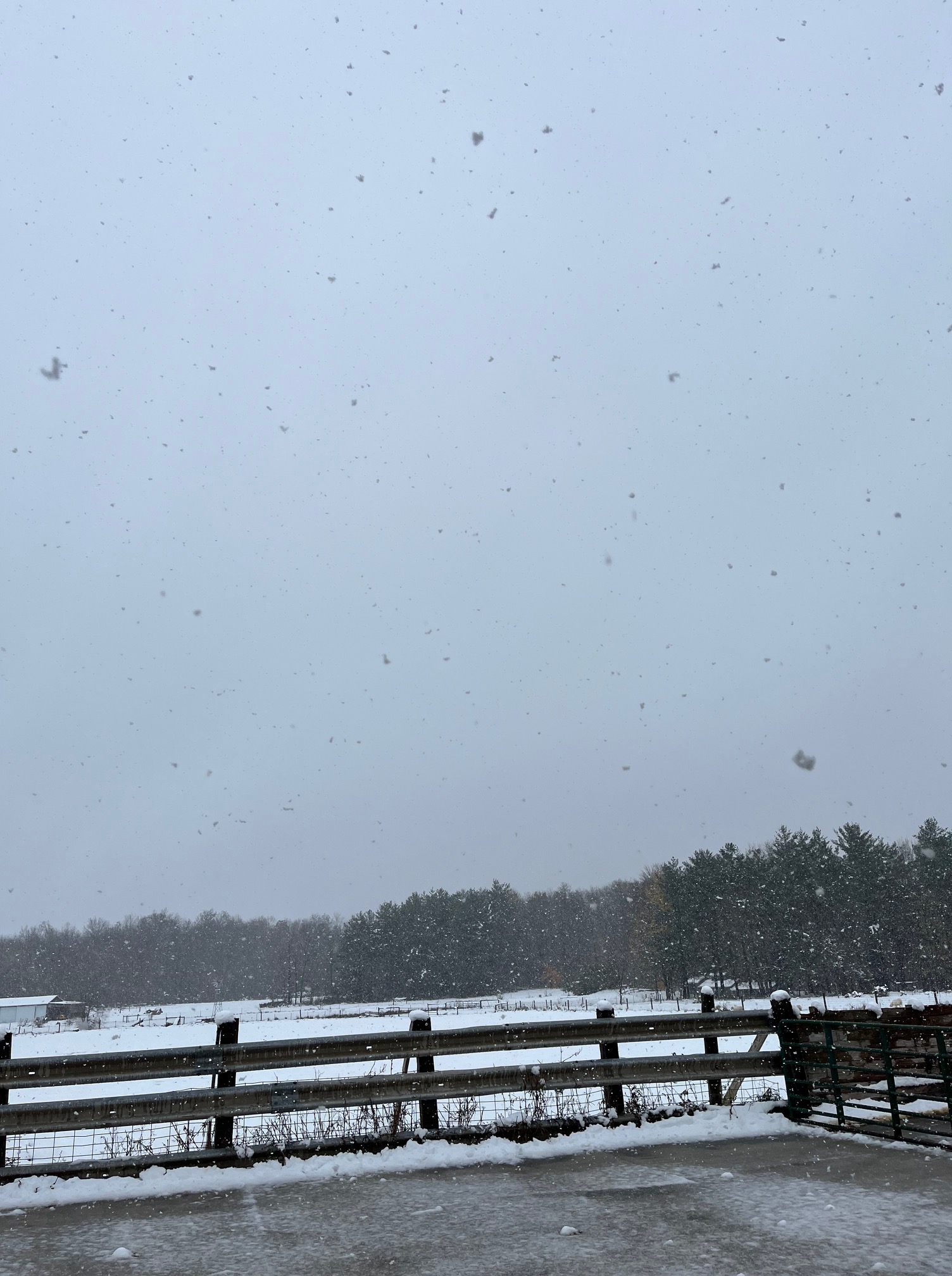 What a change a day makes. Yesterday was cool, but nice as we said goodbye to October. Today, the snow greets us. There was over four inches on the ground and a few more on anything flat when I got up this morning. We all knew it was coming. Here it is.