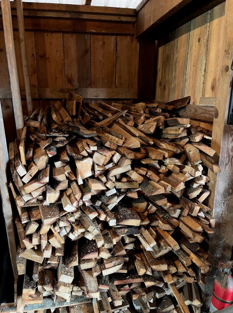 We managed to get our kindling bunk mostly filled today too. I use this smaller wood to get the big fire going to boil the sap. I use “edgings” from a local sawmill cut in about two foot lengths. They will dry for the next several months and work out very well to get us off and boiling.