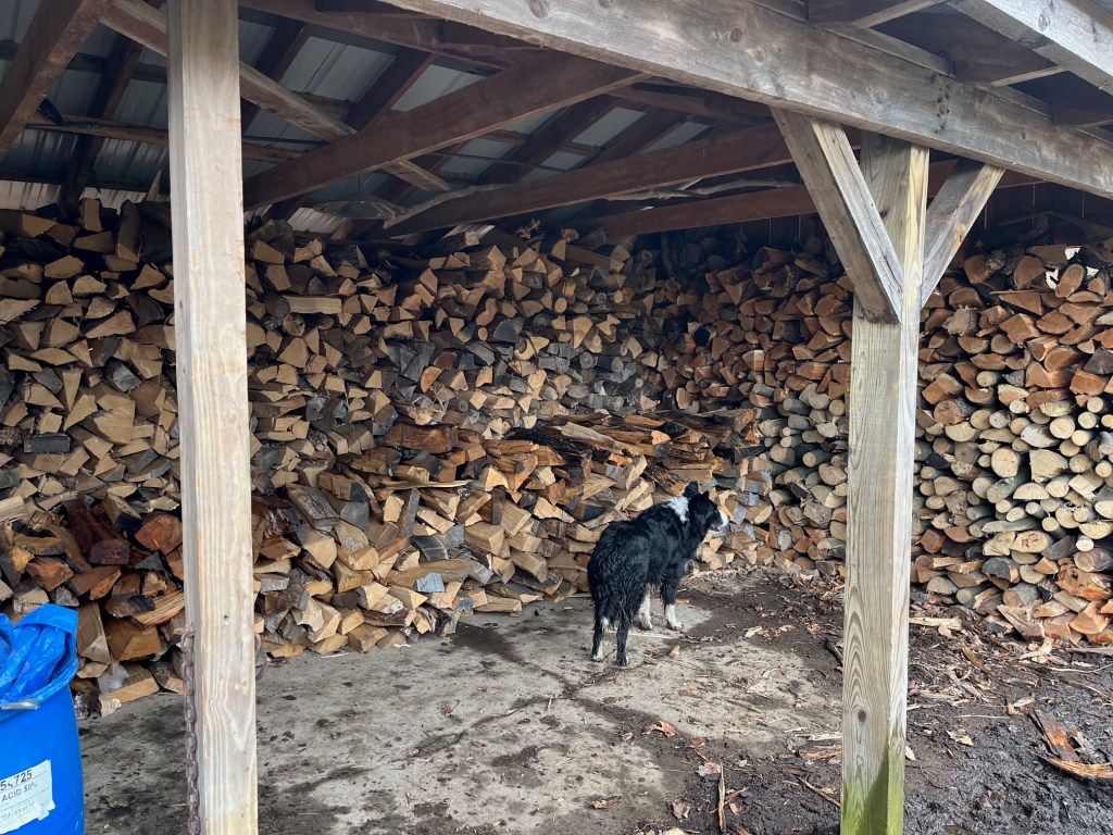 Sam, is inspecting our stack job. We restored order in the woodshed today. We will start the job of filling it back up very soon. The short season left us with a good start on next year’s wood.