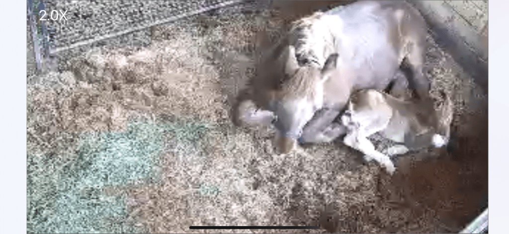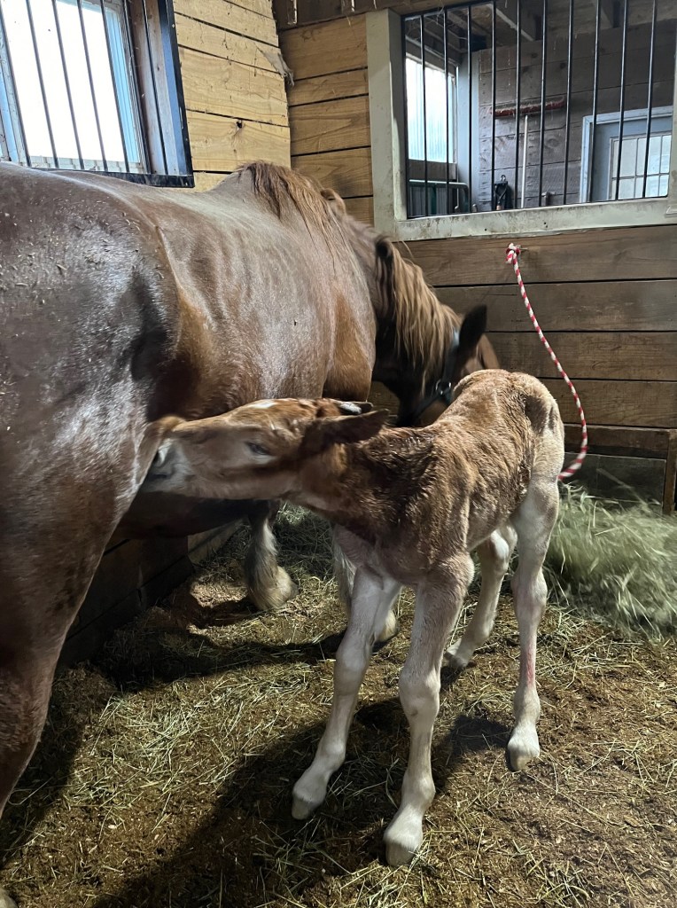After three days that saw some pretty low points, she and mom have turned the corner and are doing well. We named this little girl, ” Riceland Meadows Rosie’s Blossom”. Blossom for short. It seemed perfect for the sweet baby that she is, the time of year that she was born and the bright future she has to “bloom” in the Suffolk Punch horse world!