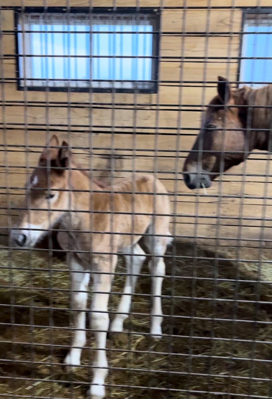 This sweet little filly arrived 4 days ago. She and momma gave us quite a scare. They were touch and go for a couple days, showing us how fragile life can be.