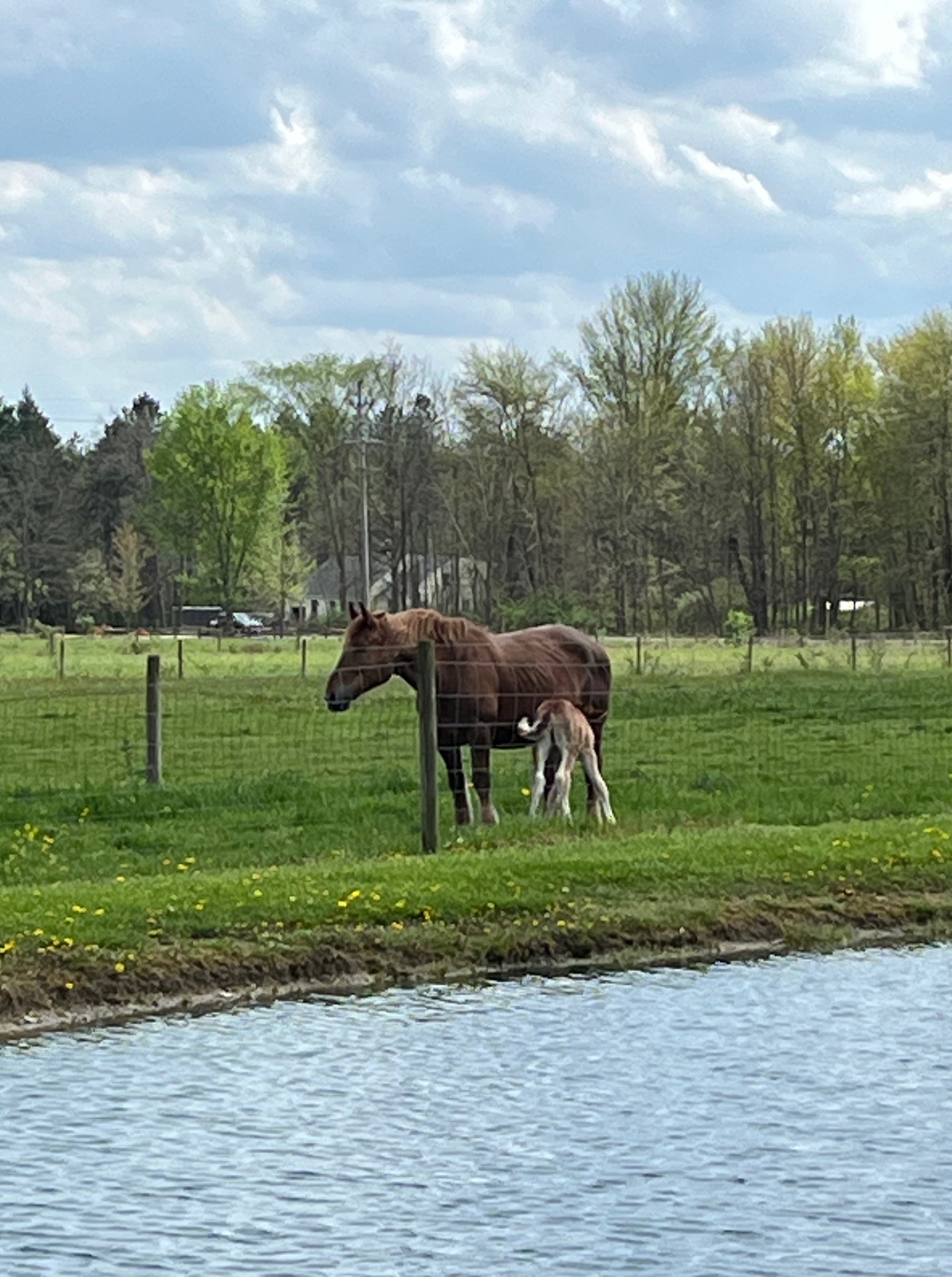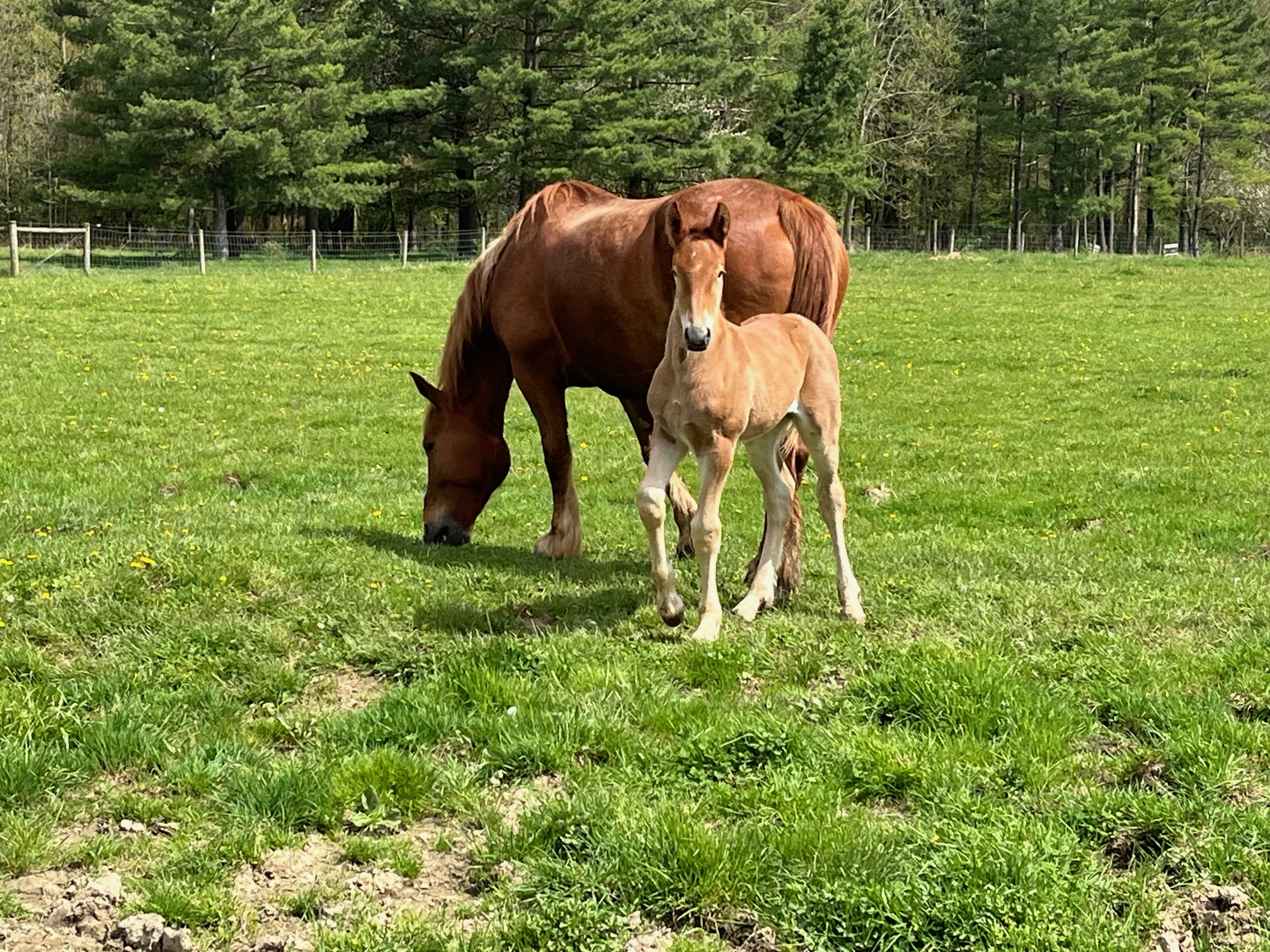 Hello May! Work here continues as we get the sugarhouse woodshed filled on wet muddy days and work in the fields and gardens when the weather allows. The best part is working with horses every day…and watching the babies grow!