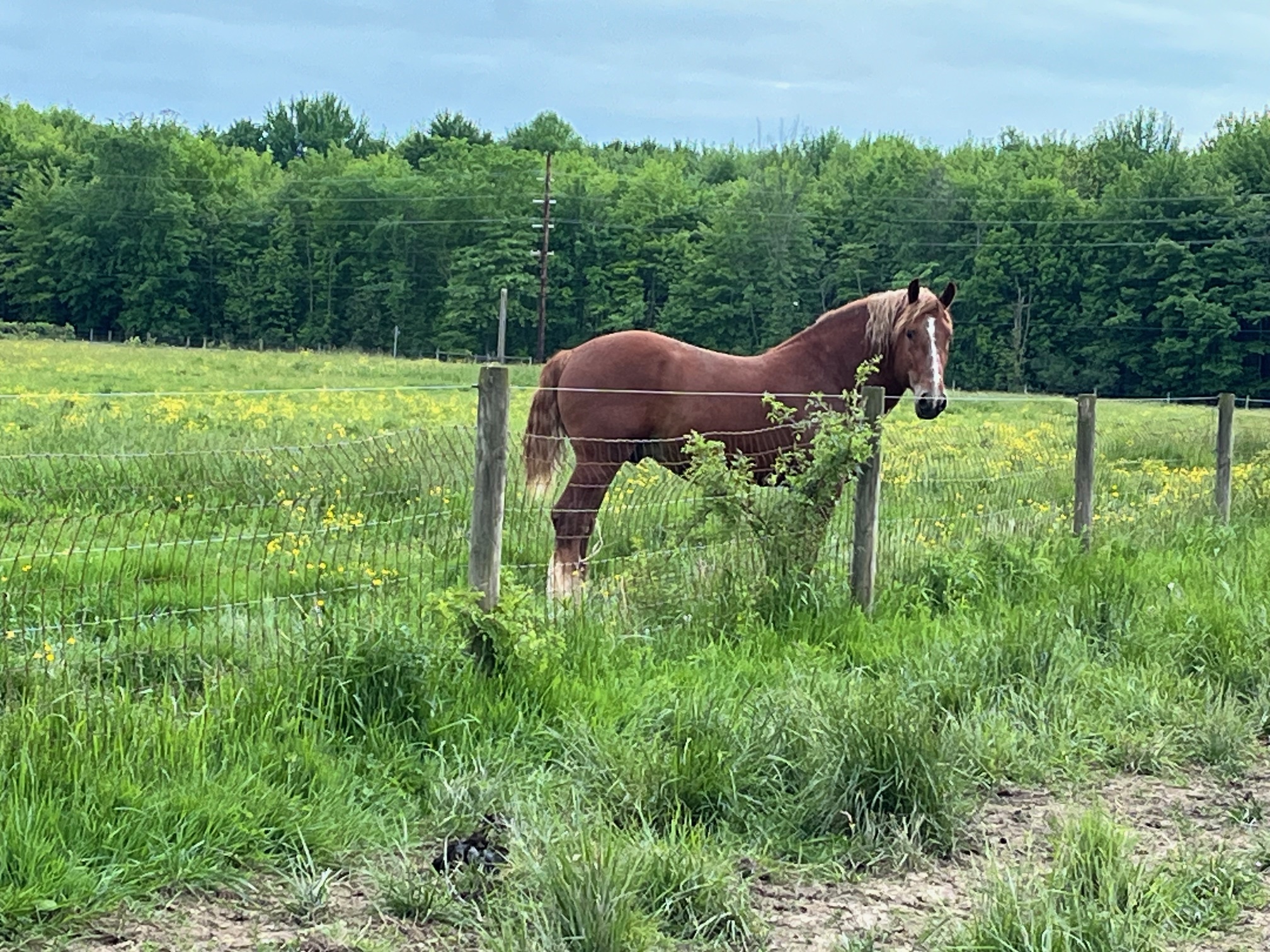 Our herd stallion Hank, surveying the pastures and his “gals” too. Hank has 2 new baby girls here on the farm. He likes to let everyone know that he is large and in charge…right up until one of the mares puts him in his place. Like all of us guys, he quiets down and sulks off…until next time.