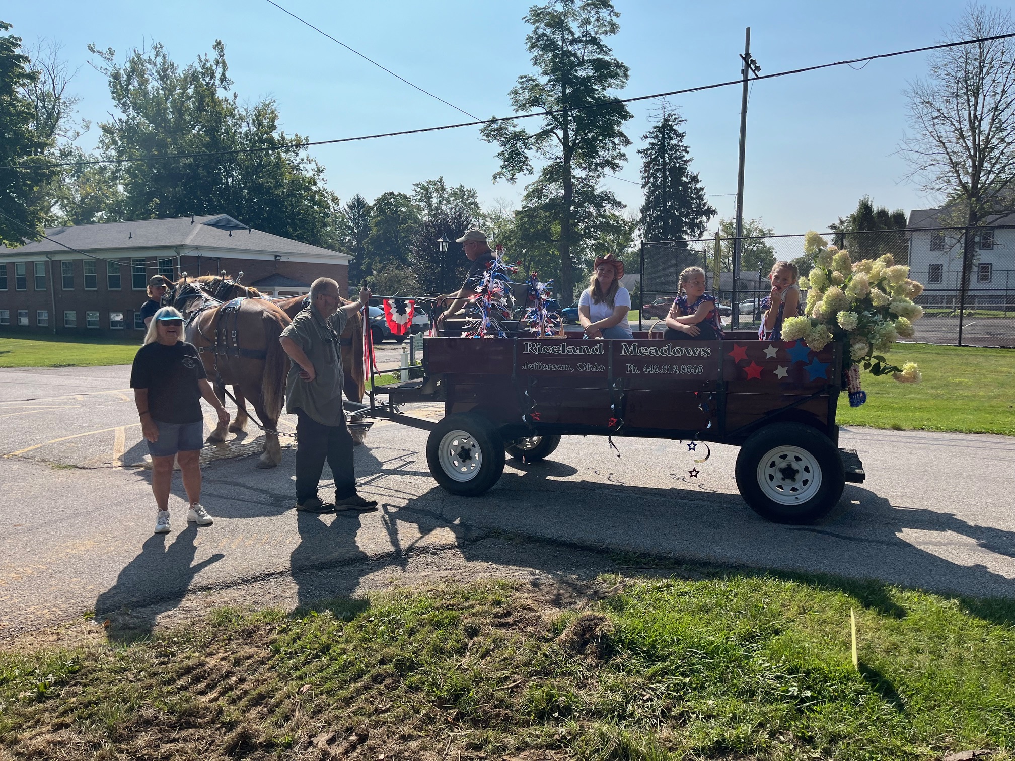 Of course there are the regular chores to do, lawn care and maintenance. We continue to train the young horses as well. We did take a little time off for fun, including parading our mares Amee and Abby in a local Country Days Parade.