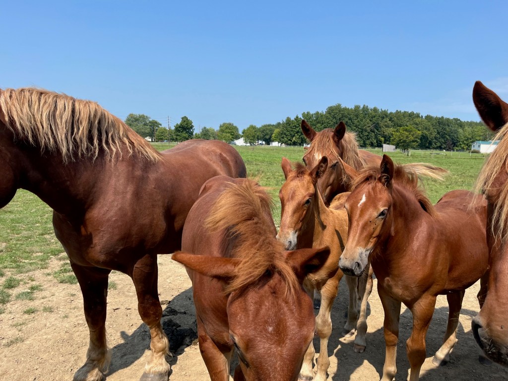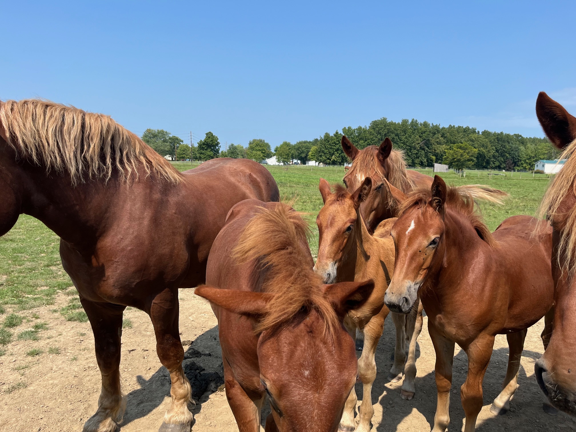 Our 2024 foals are growing well. Our stallion Hank watches over his babies and their mommas. The whole herd is enjoying time on pasture and the green grass that comes with it. Soon it will be time to wean the babies from their mommas, but for now it is all bliss.