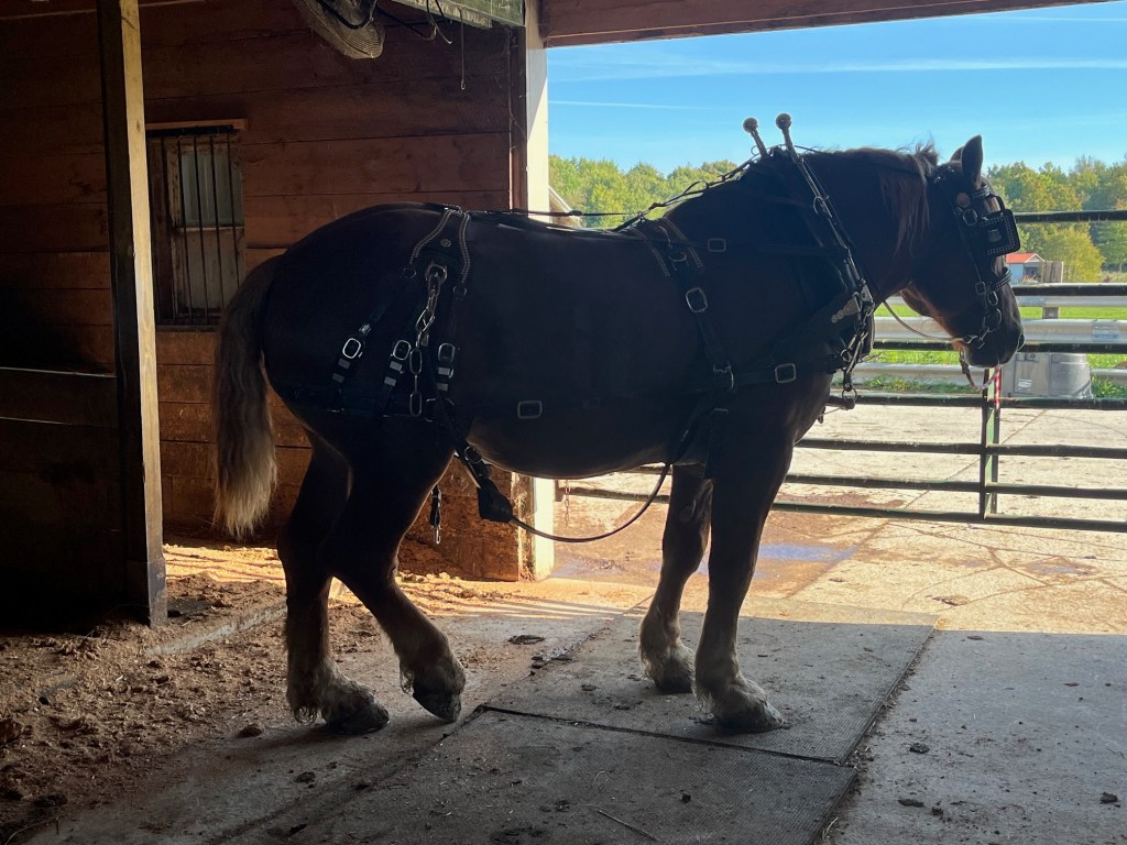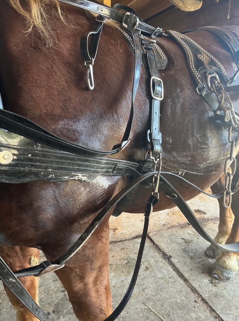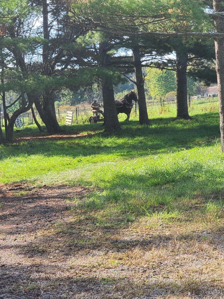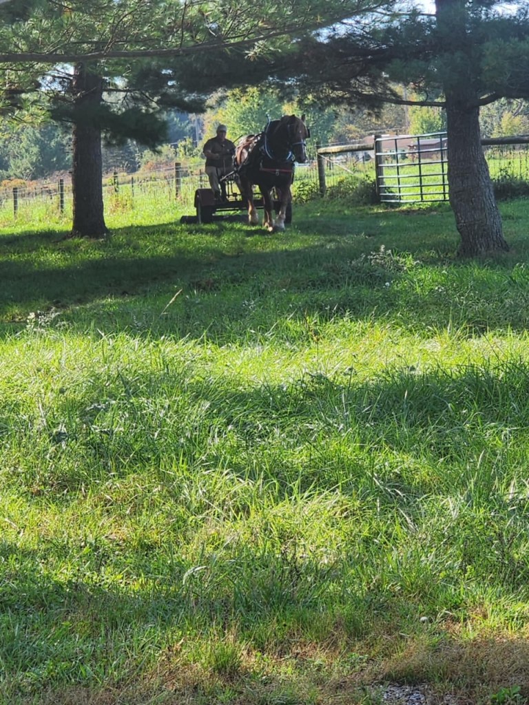 We are working hard to make ready for winter. We are getting the last of the sugarwood in the woodshed to be ready for the 2025 maple syrup season. We are also training our horses. Hank stands ready in the doorway. He is relaxed, listening and ready to go.
