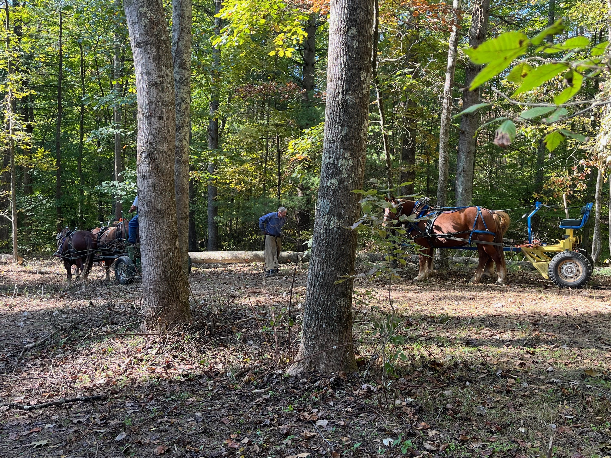We came together as friends to share our knowledge and experience about restorative forestry, chainsaw safety, tree selection, tree felling, surgical log extraction using draft horses and why these things are important to us. We, the Suffolk horse groups from northern and southern Ohio, Kentucky and Virginia, had a great time coming together for a fun, productive day in the woods.