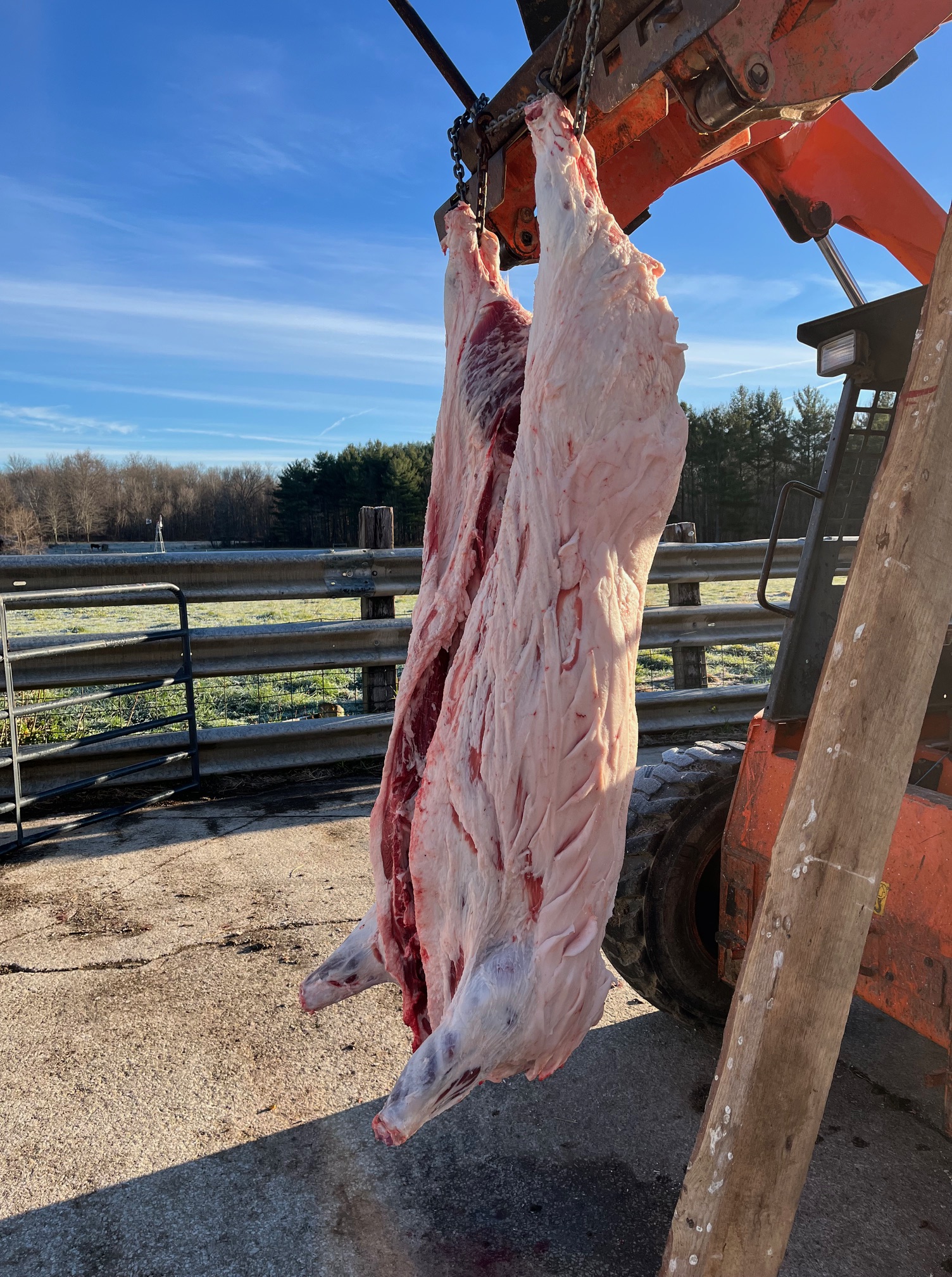 We butchered this hog of our son for him and his family. We had to wait for cool weather. I never expected to have to wait until this late in November! He was a very nice hog that provided a lot of tasty meat.