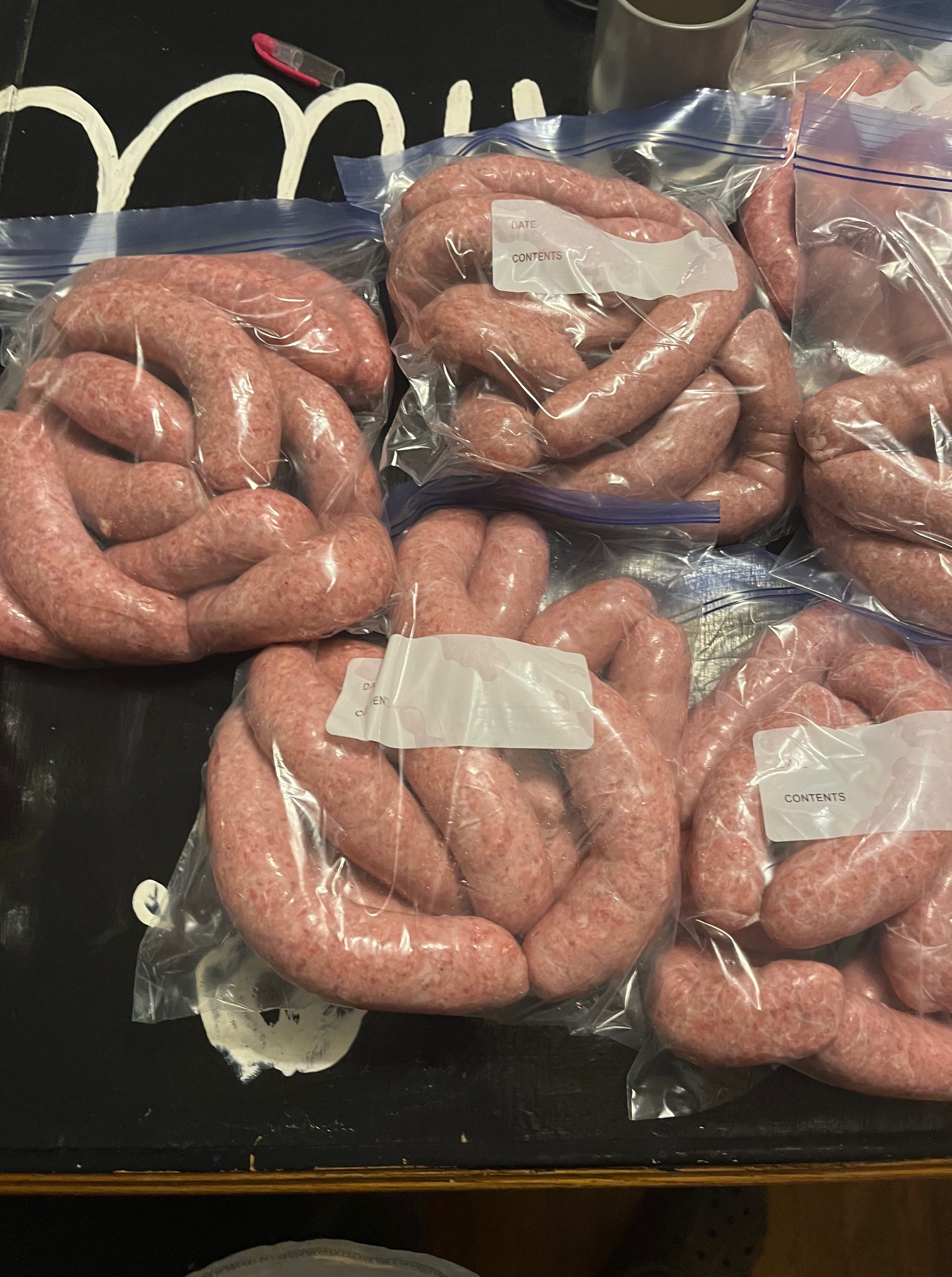 The pork chops and roasts were real nice. Some of the sausage got made into links. The hams and bacons are wonderful. We processed this on a plastic folding table in the side yard by the house. Many of the kids had a hand in helping. So very nice for another generation to know exactly where food comes from and just how good it tastes!
