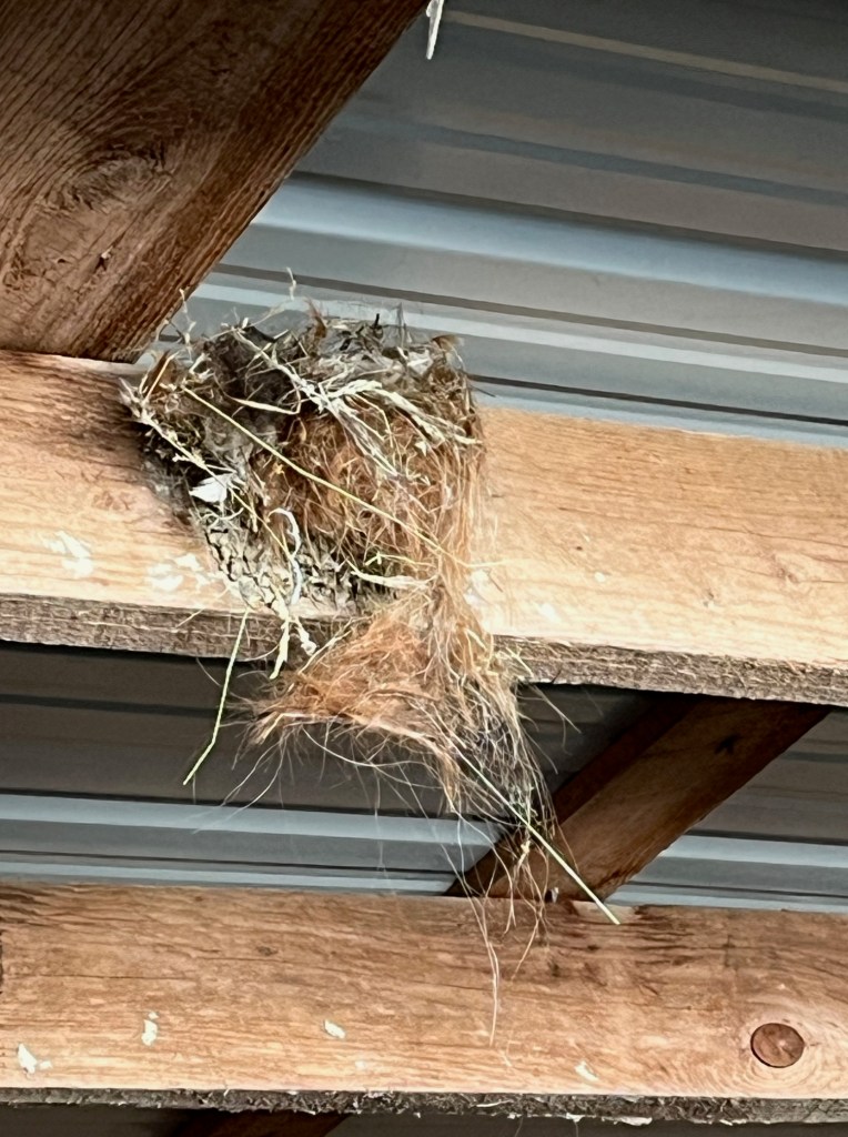 The work here can finally begin. The spring rains are starting to wane and the soil is drying up. We have two very pregnant mares waiting to deliver. The dry ground and growing green grass is a welcomed sight. Songbirds are hatching all around the farm. Spring has sprung as they say and lots of hair has been made into homes.