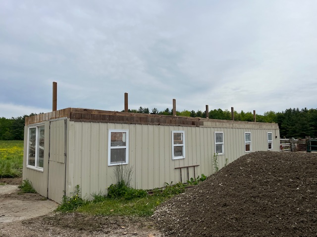 The old pig barn sits adjacent to our feedlot. Electricity and water are already present in the building. It was a wise decision to use this building over and renovate it to fit our purpose. It’s a lot of work, but will save us time and money as we build. Much of the lumber came from our white pine trees harvested just for this job.