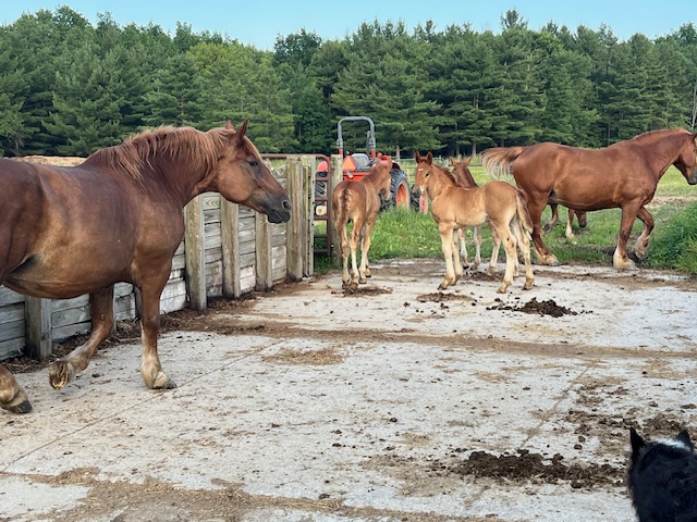 Many jobs await me as we work our way through summer. The pastures are getting mowed, manure is being stacked for composting and horses are being trained. The breeding season is wrapping up with just 3 more mares to go. The gardens are growing with corn almost knee high. Hay is getting made when the sun shines on us. All and all, things are very good. Thank you June and goodbye.