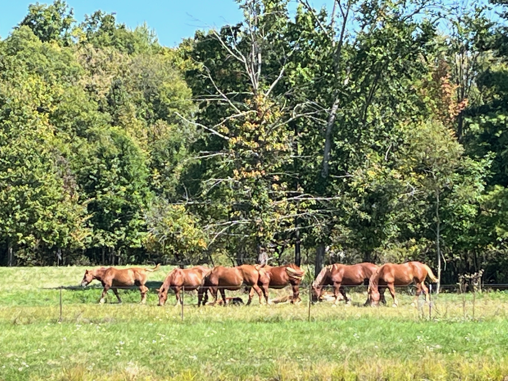 After a busy September filled with construction projects, The Ohio Regional Gathering, a logging instructional day in southern Ohio, October flew in. We had a couple completed projects so far this month too, including the North American Suffolk Horse Association gathering in Wisconsin. All of my absence on this BLOG is attributed to my computer not talking to my “photos” and my Scotch-Irish temper causing me to shutdown. I’m better now :o)