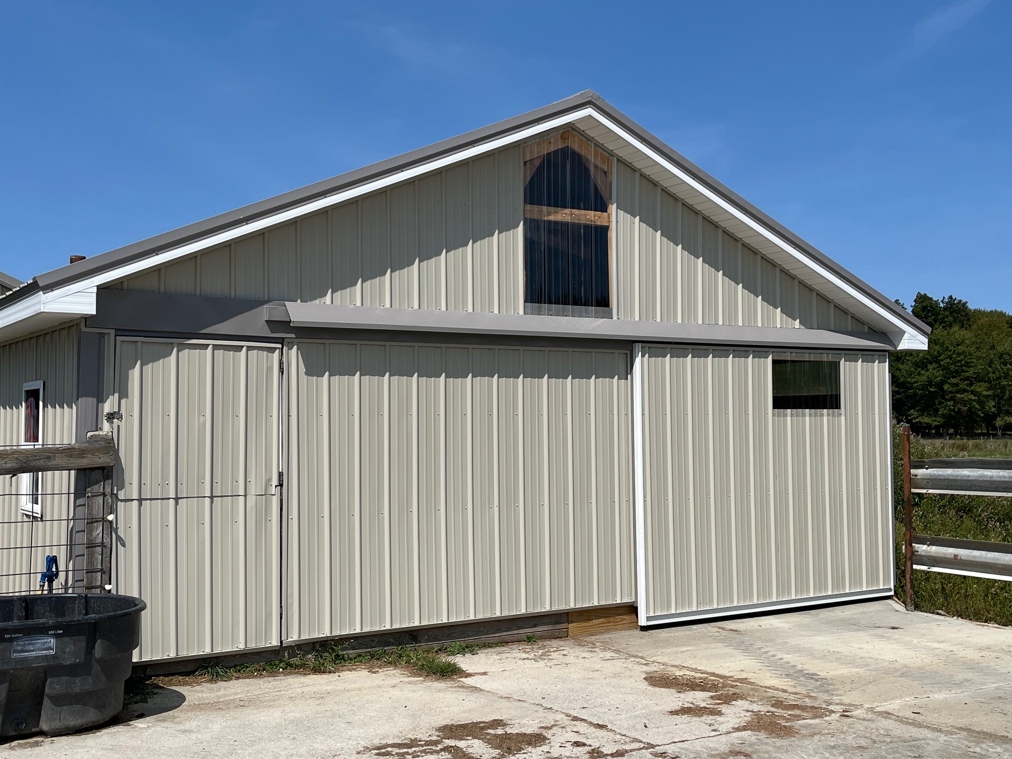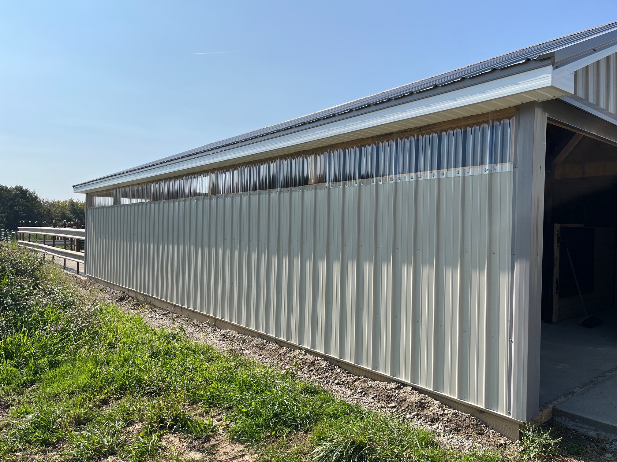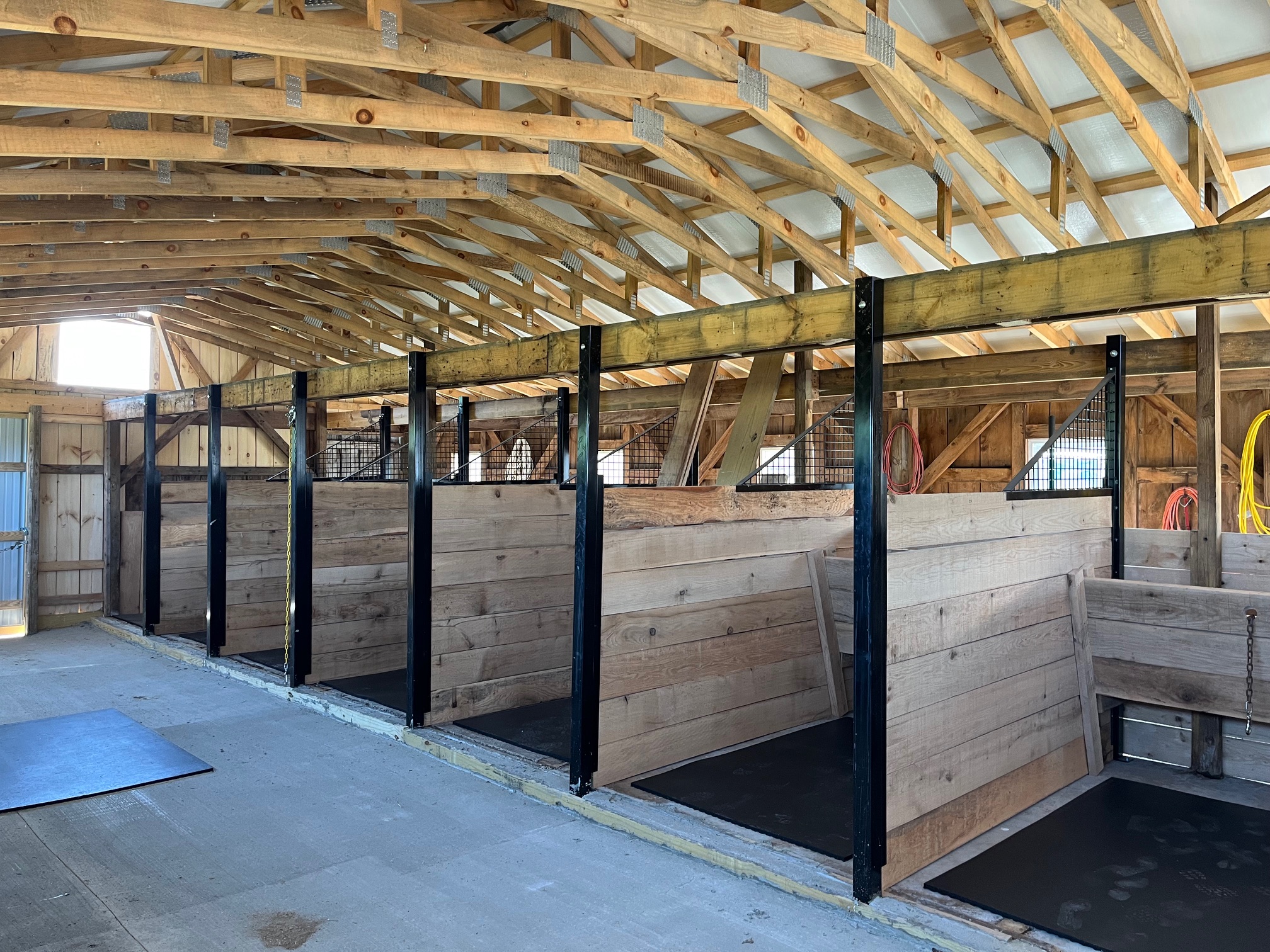 The old pig barn has become the new horse barn. It was a summer long project but I am pleased with the way it turned out. The oak stalls make a sturdy, comfortable, safe place for the horses, between turnouts.