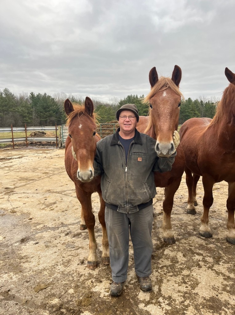 This is Jaimee and Murtagh. Registered Suffolk Punch draft horses, half brothers, sons of our stallion Hank. They will be my next farm team. They have both been gelded and are becoming fast friends.